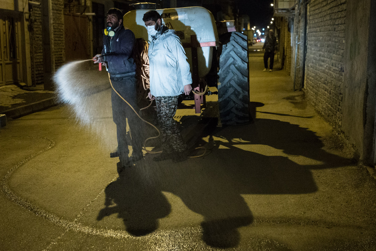 به دنبال شیوع بیماری کرونا، عملیات ضد عفونی و پاکسازی معابر و اماکن عمومی محدوده شهرک طرق به همت بسیجیان و با استفاده از ظرفیتهای کشاورزان این منطقه هر شب در این ایام انجام میشود.
