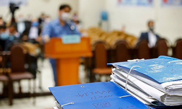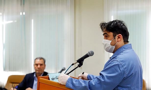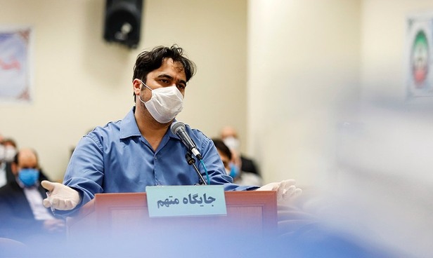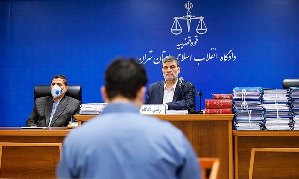 روح الله زم با ماسک و دستکش در دادگاه+تصاویر