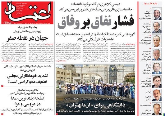 صفحه نخست روزنامه‌های کشور - سه‌شنبه یکم آبان ۱۴۰۳
