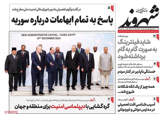 صفحه نخست روزنامه‌های کشور - شنبه ۱ دی ۱۴۰۳