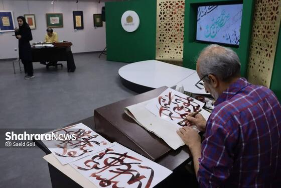 وی افزود: هفته گذشته نمایشگاهی از آثار اساتید انجمن خوشنویسان مشهد در نگارخانه رضوان برگزار شد و امروز هم در ادامه همان مسیر، میزبان هشت نفر از اساتید و مدرسین ارجمند خوشنویسی هستیم که به نیت نام مبارک حضرت رضا (ع)، دو ساعت پیوسته به کتابت القاب ایشان مشغولاند.