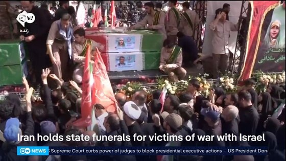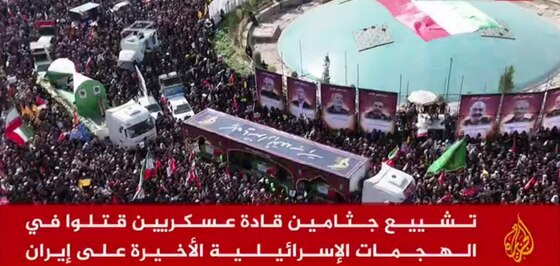 خبرگزاری غربی در گزارش خود به حضور هزاران نفری مردم عزادار ایران در مراسم تشییع پیکرهای پاک شهدای جنگ تحمیلی رژیم صهیونیستی علیه ایران، شامل فرماندهان ارشد سپاه پاسداران و برخی اعضای خانوادههایشان، دانشمندان هستهای و همچنین مردم بیگناه اشاره و خاطرنشان کرد: شرکتکنندگان ضمن همراهی با ماشینهای حامل این پیکرها، شعار «مرگ بر آمریکا» و «مرگ بر اسراییل» سر دادند.