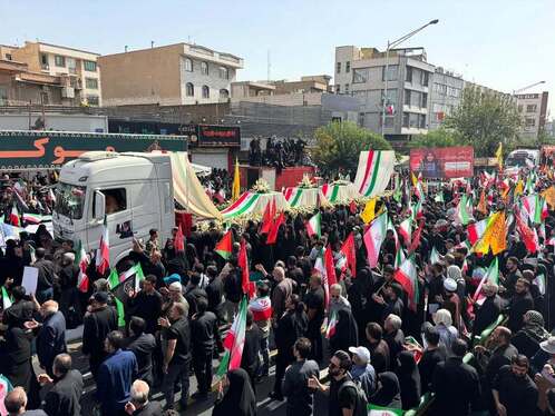 آسوشیتدپرس: هزاران عزادار روز شنبه در خیابانهای مرکز شهر تهران برای تشییع پیکر فرماندهان ارشد و دانشمندان هستهای ایران صف کشیدند