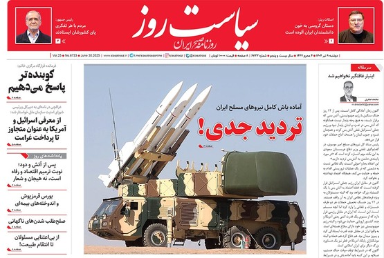 صفحه نخست روزنامه‌های کشور - دوشنبه ۹ تیر ۱۴۰۴