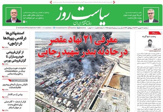 صفحه نخست روزنامه‌های کشور - سه‌شنبه ۱۸ شهریور ۱۴۰۴