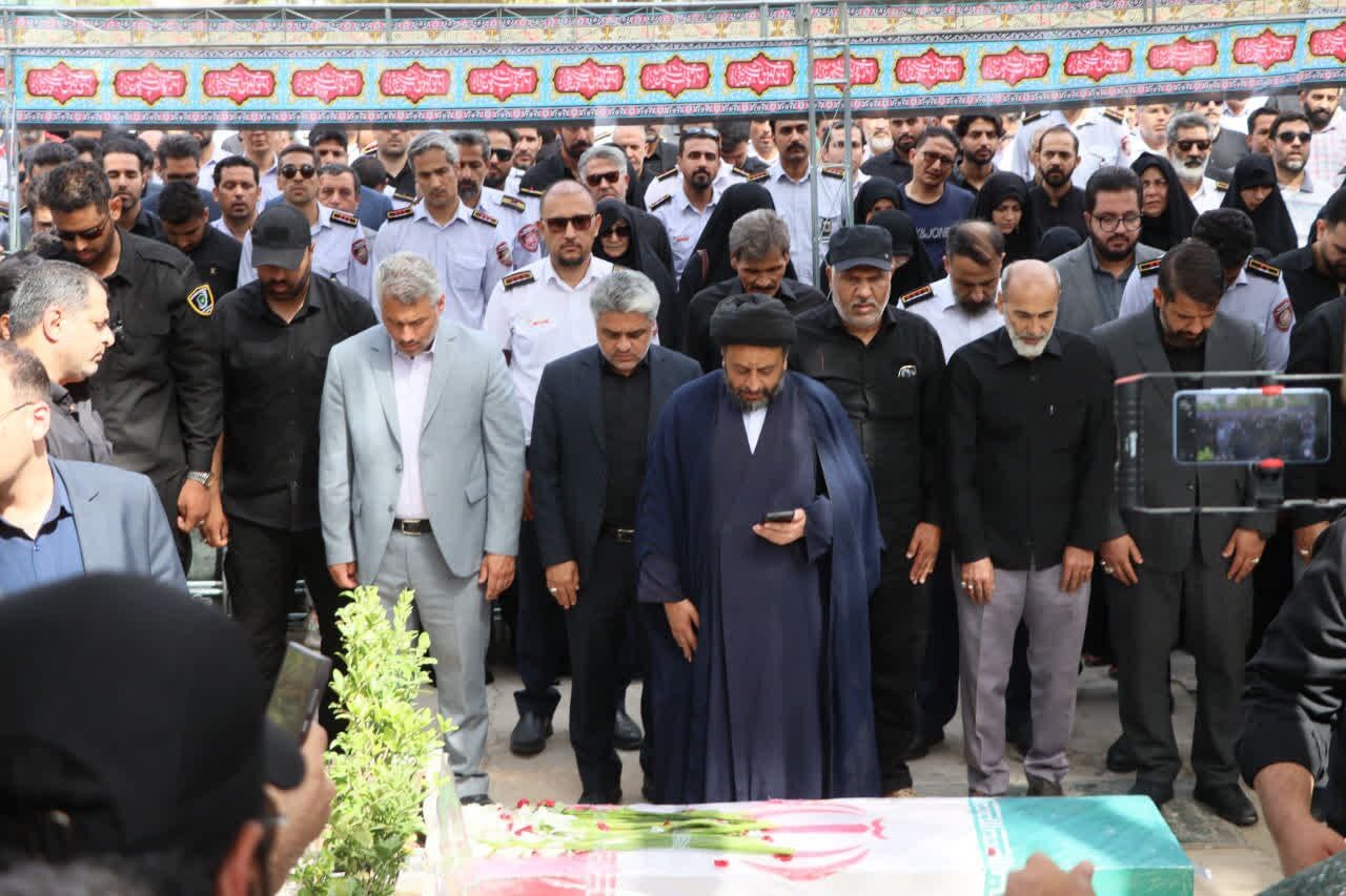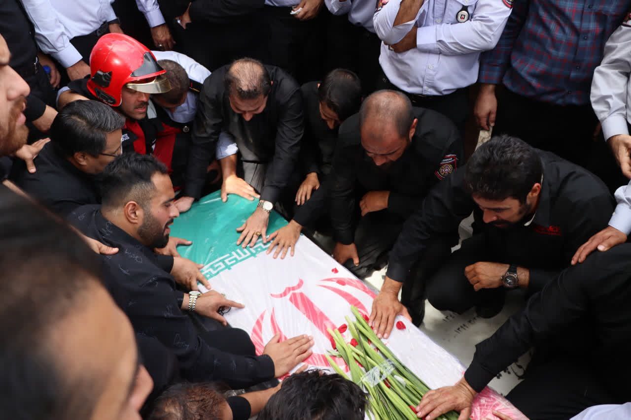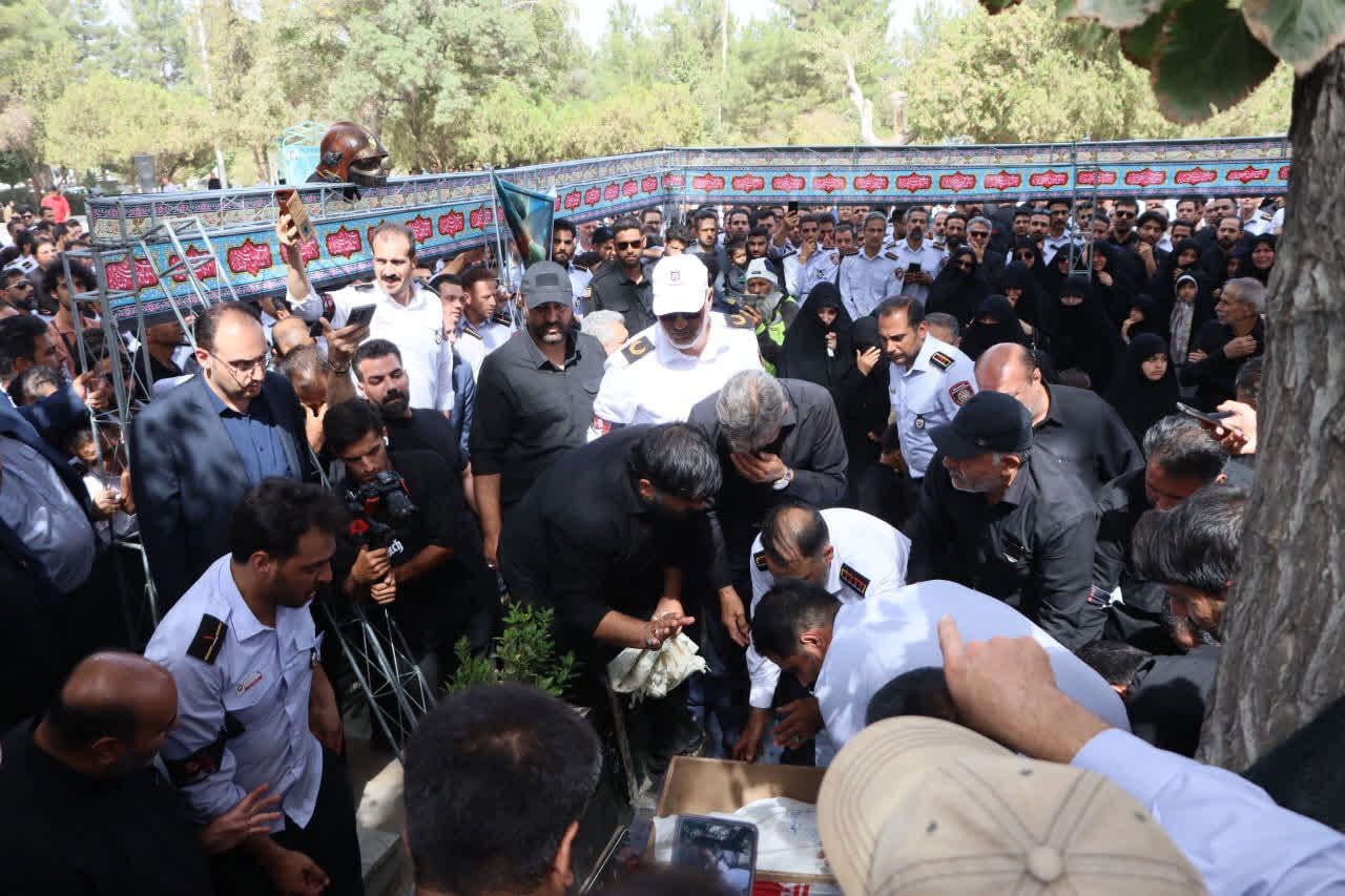 مراسم خاکسپاری آتش نشان فداکار شهید رضا فخریان، در آرامستان بهشت رضا(ع) مشهد مقدس