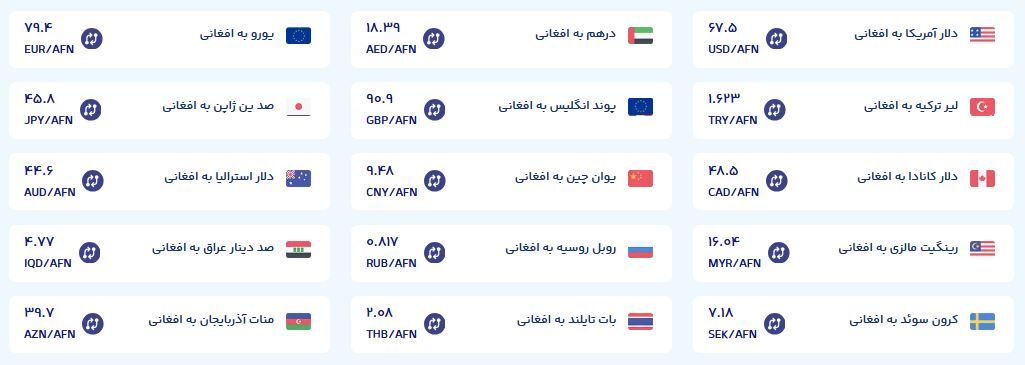 نرخ تبدیل ارز‌های مختلف به افغانی چنده؟
