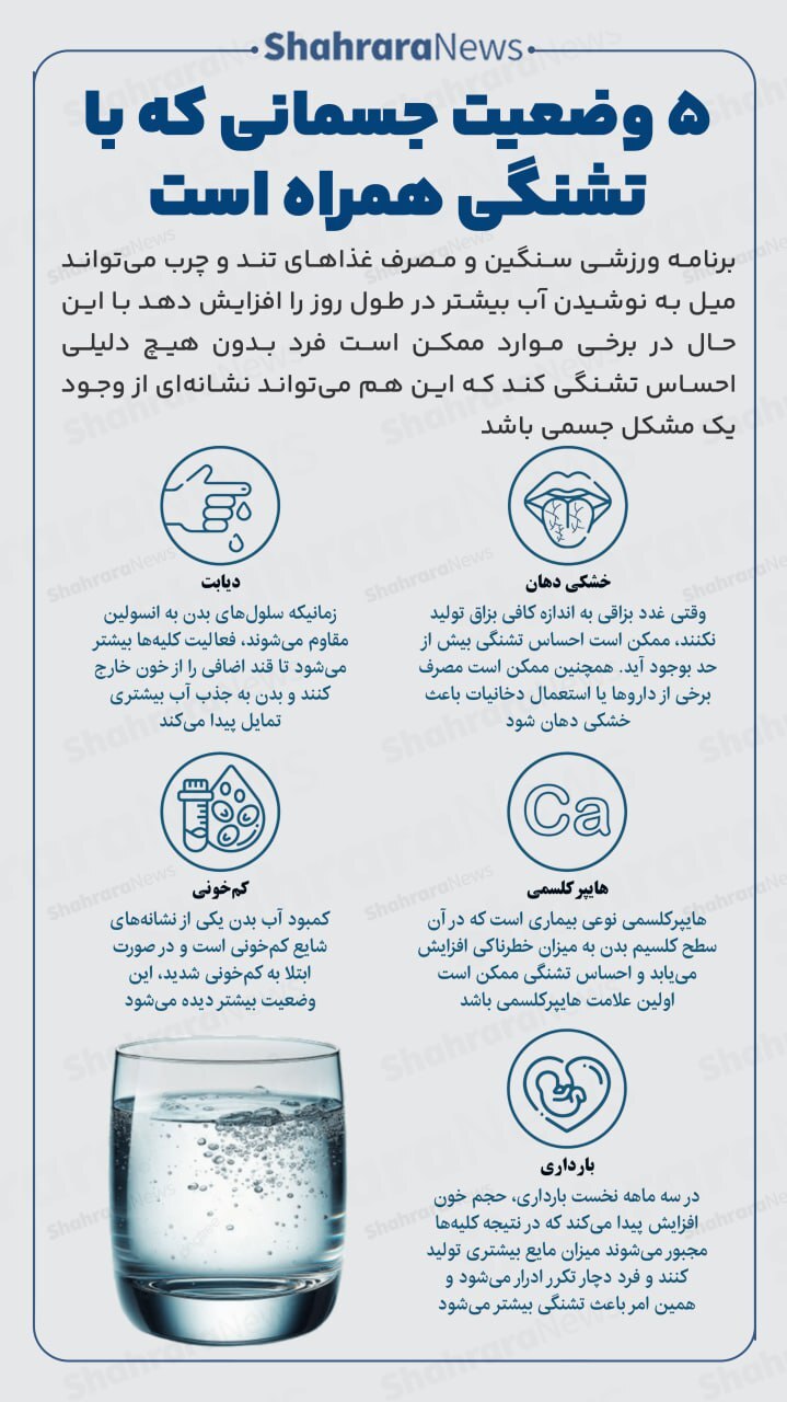 اینفوگرافی| پنج وضعیت جسمانی که با تشنگی همراه است