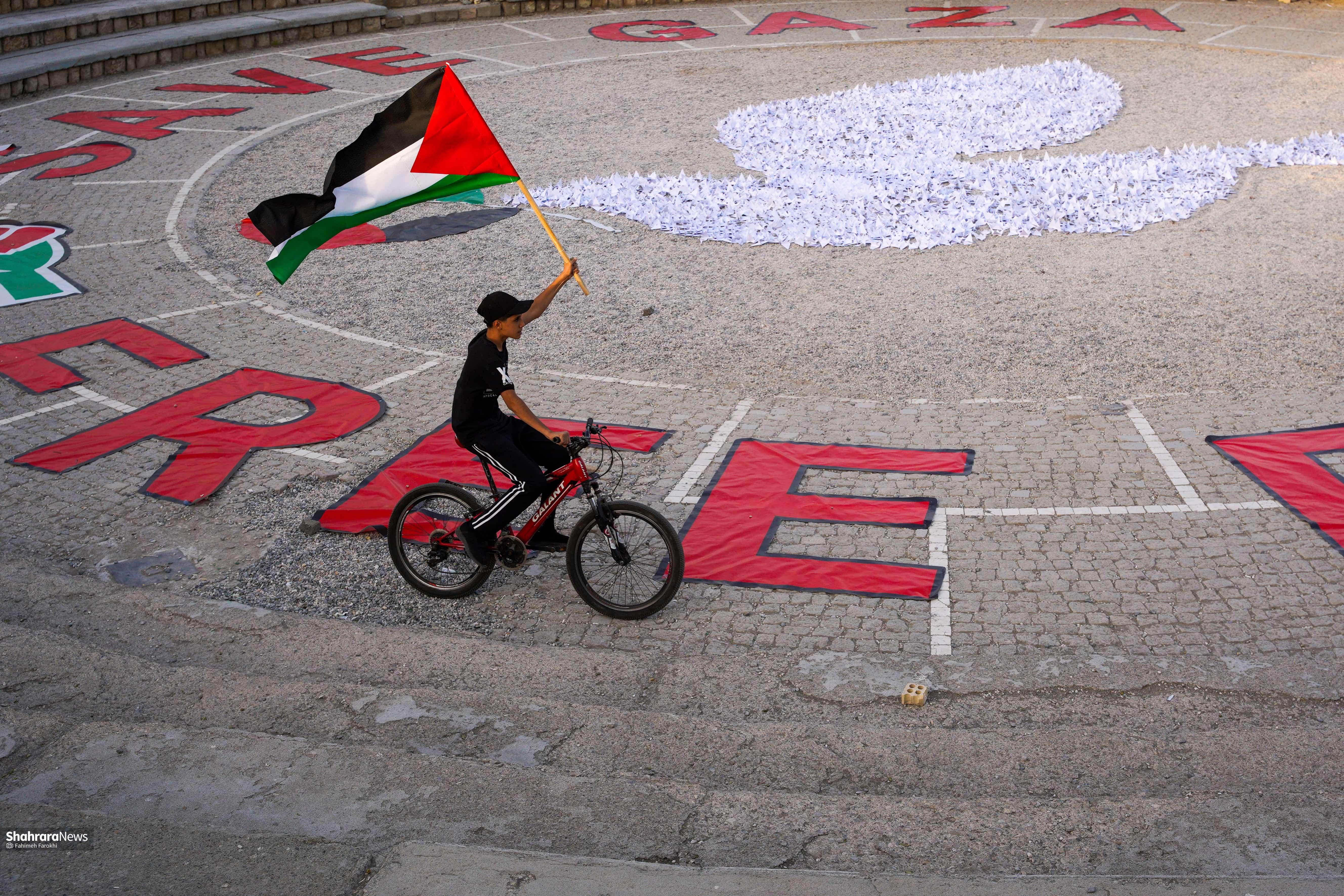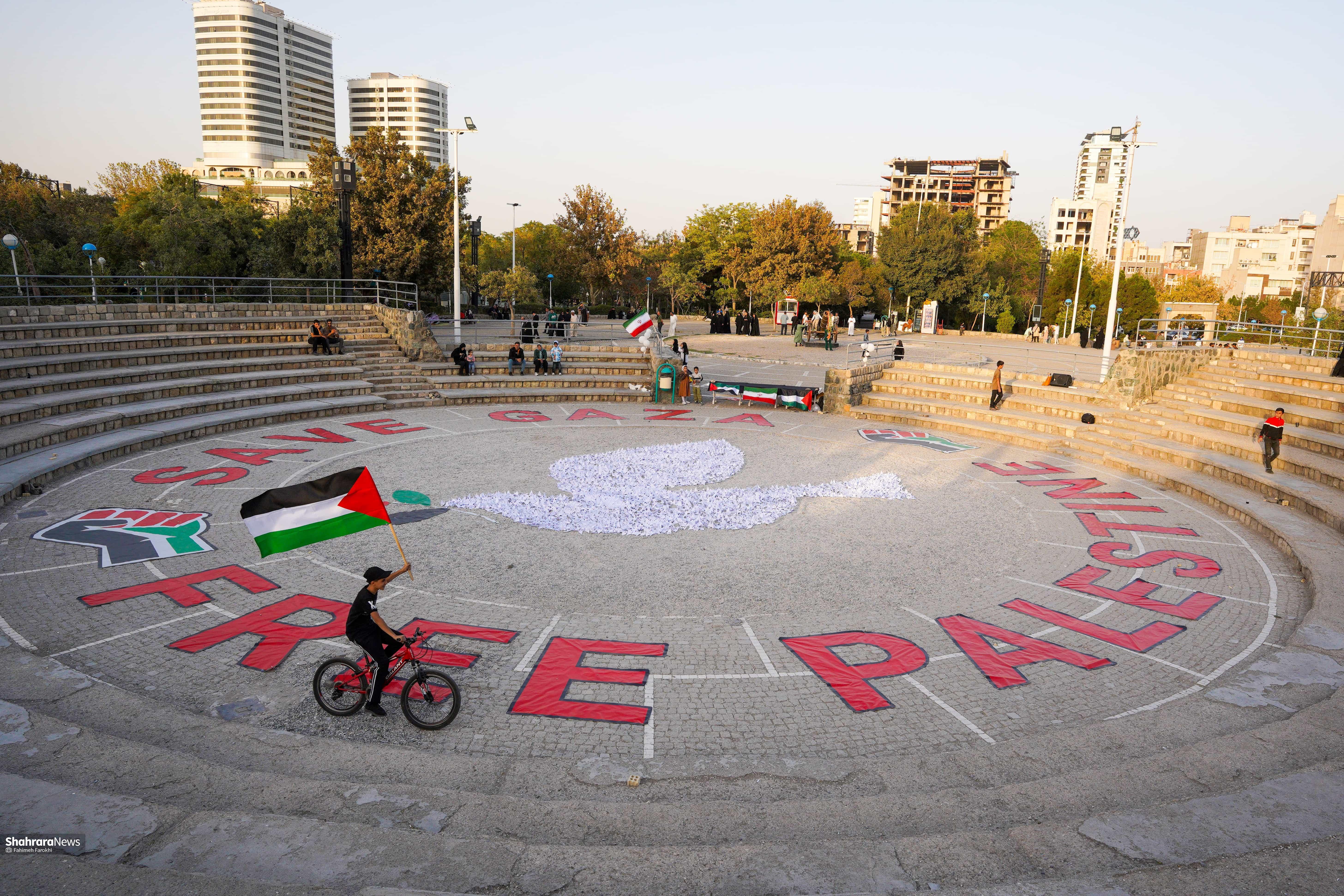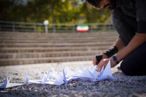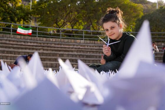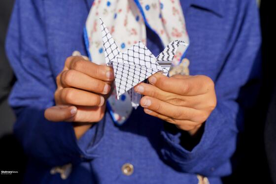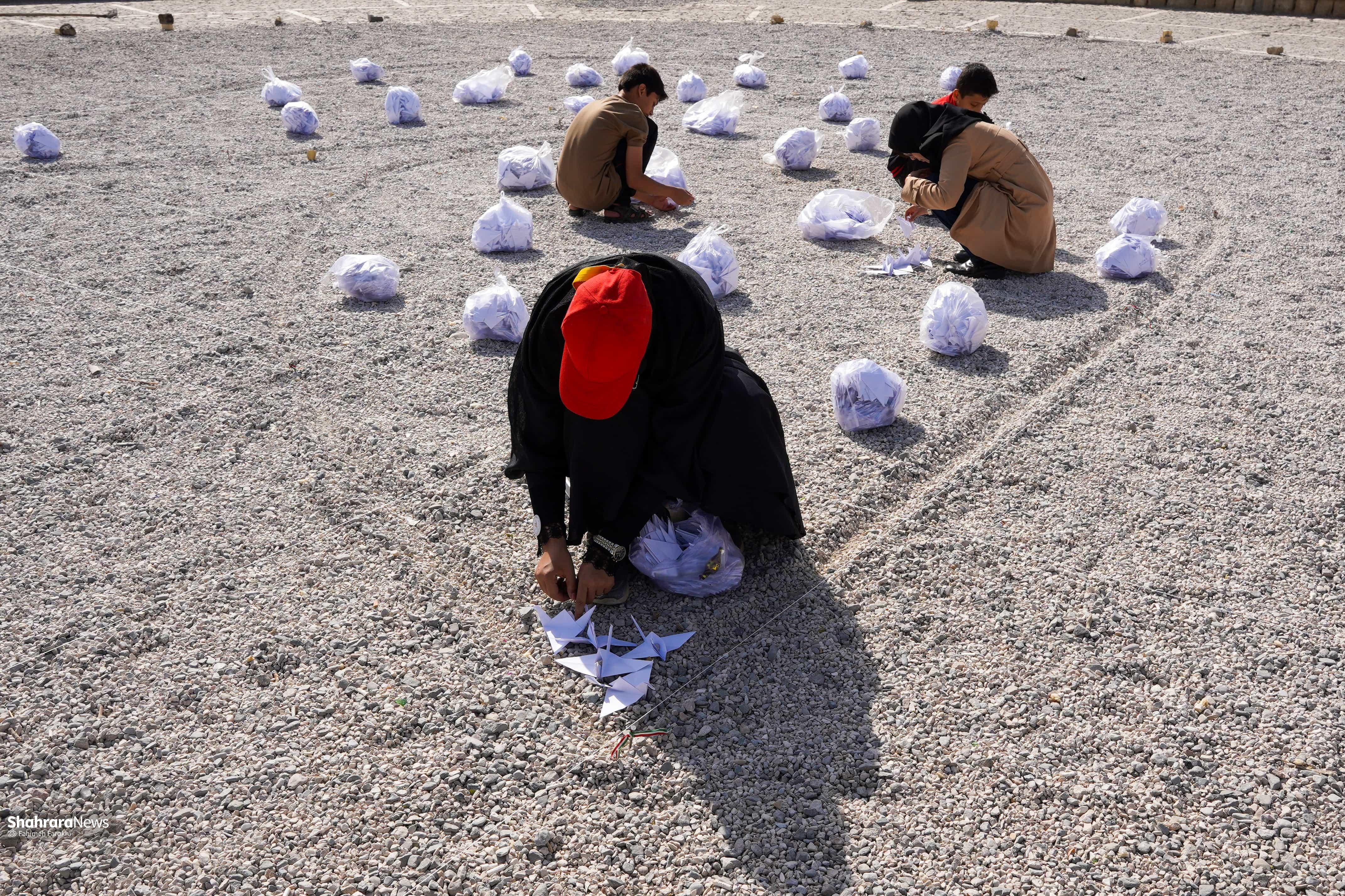 ۴هزار درنای کاغذی در بوستان کوهسنگی مشهد صدای فریاد مظلومیت کودکان غزه است