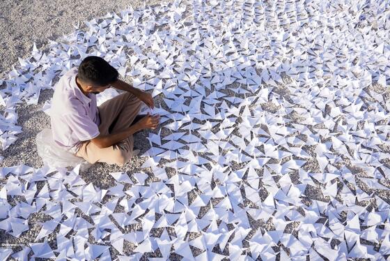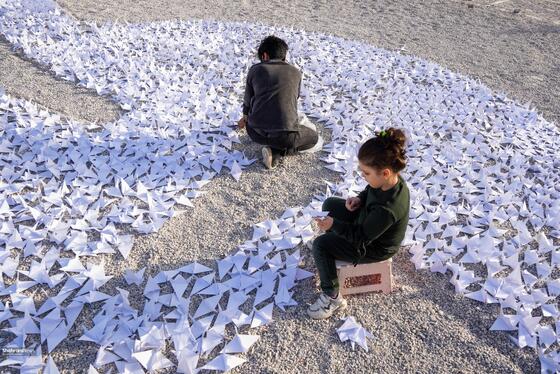 چیدمان چهار هزار درنای کاغذی در حمایت از کودکان غزه