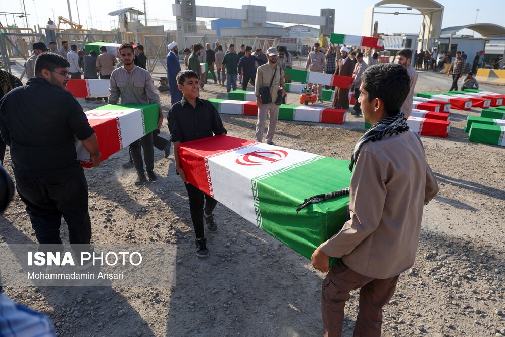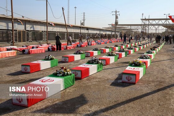 گزارش تصویری | ورود پیکرهای مطهر ۴۴ شهید تازه‌تفحص‌شده به کشور از مرز شلمچه (۱۳ مهر ۱۴۰۴)