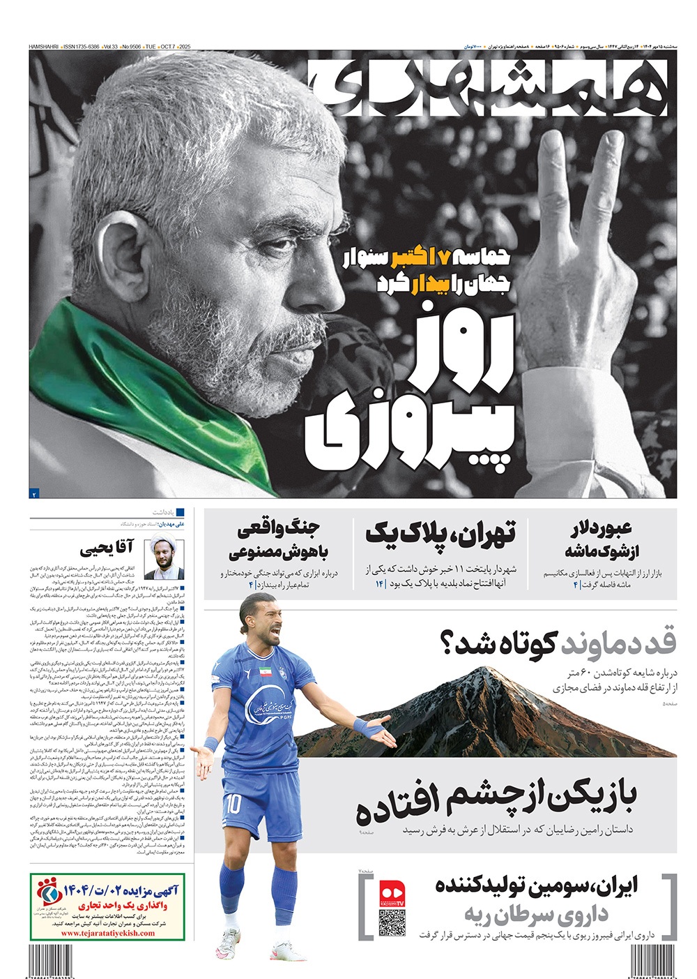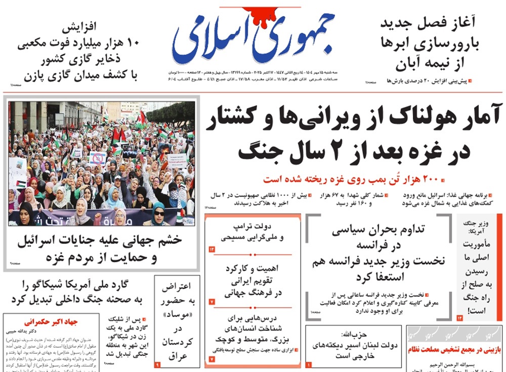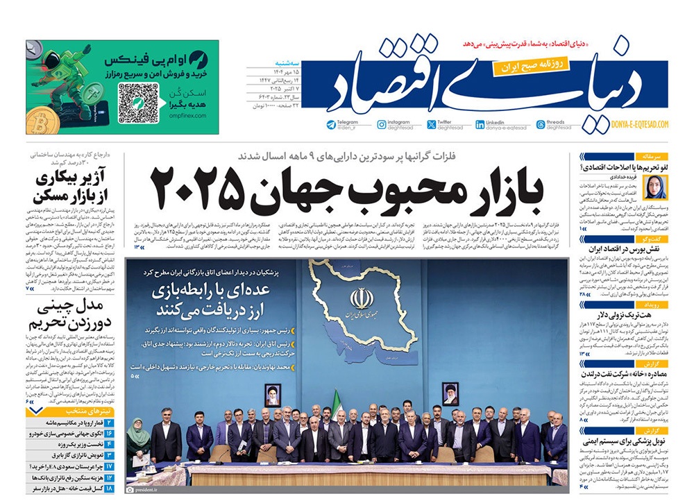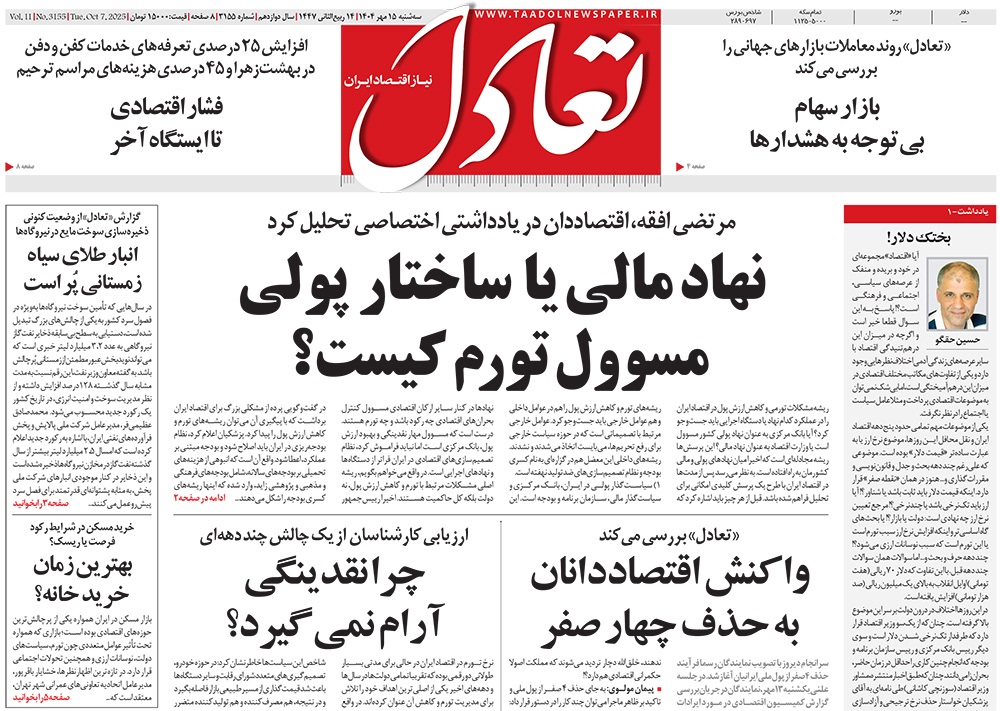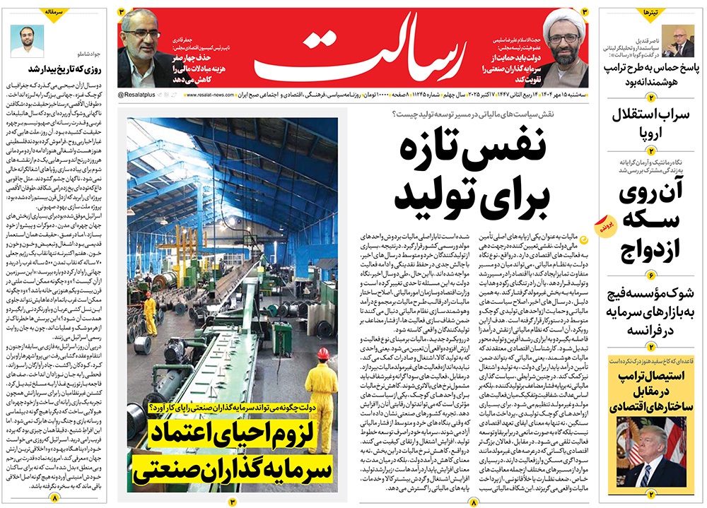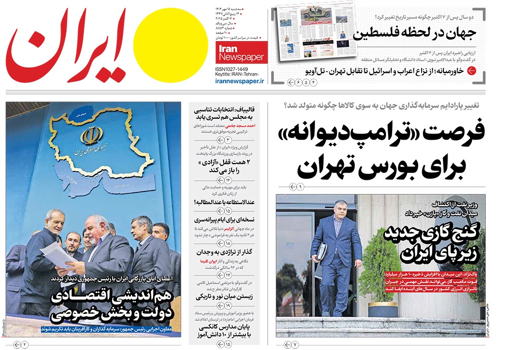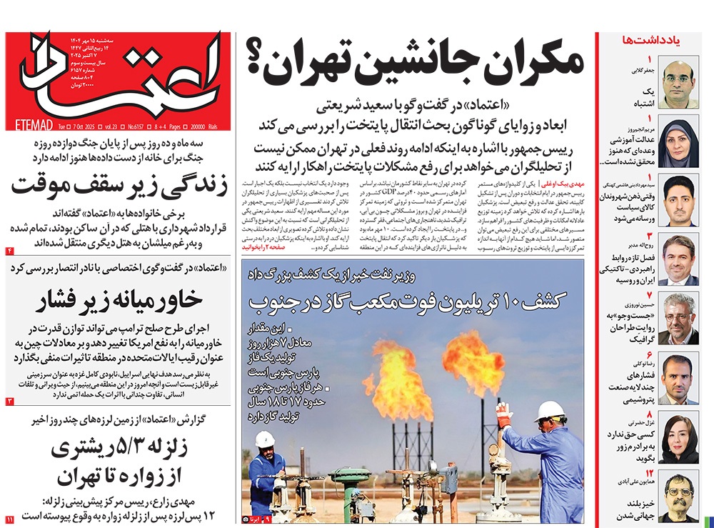 صفحه نخست روزنامه‌های کشور - سه‌شنبه ۱۵ مهر ۱۴۰۴