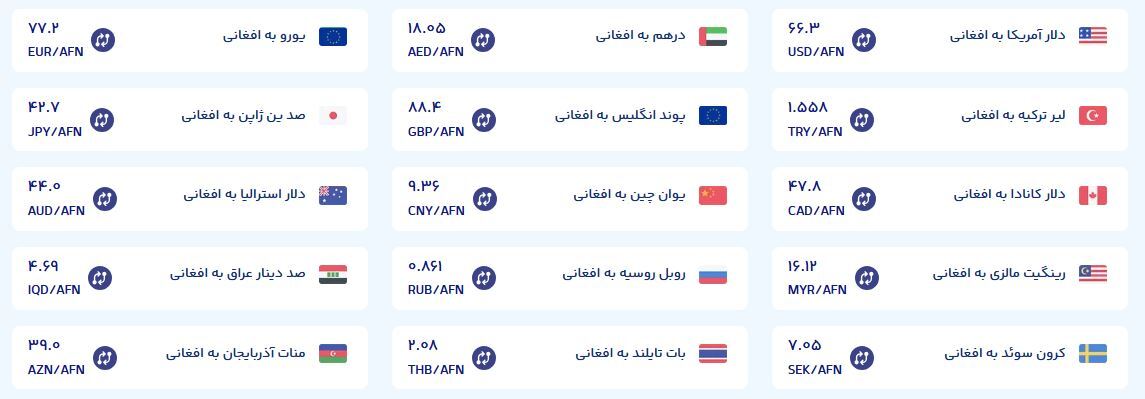 نرخ تبدیل ارز‌های مختلف به افغانی چقدر است؟