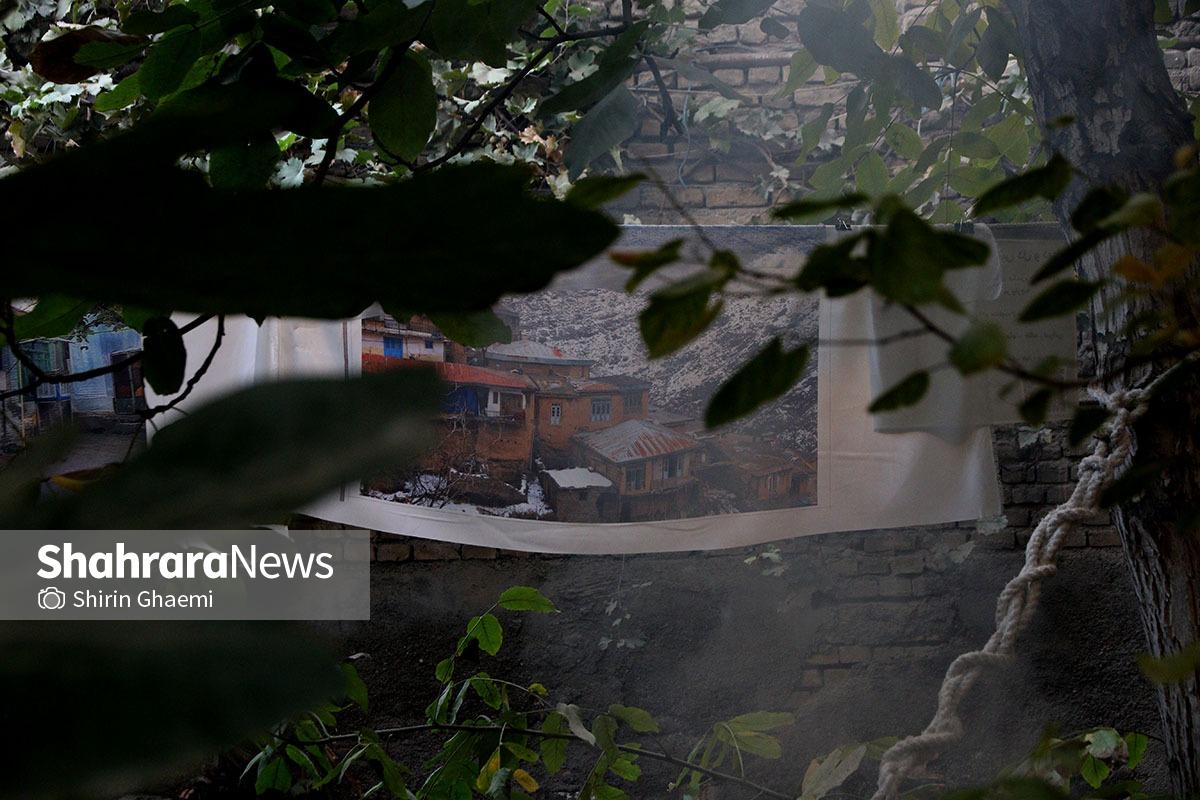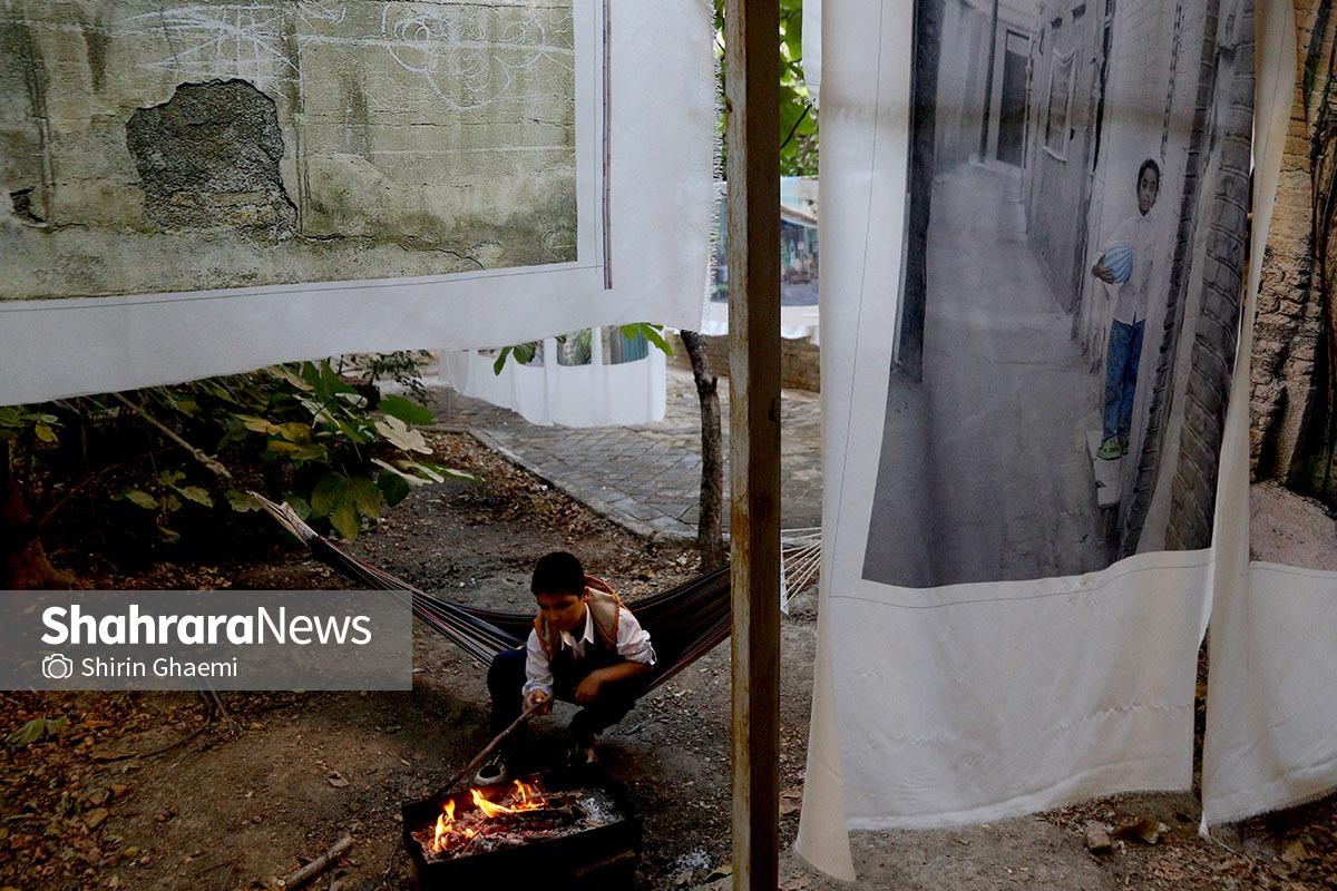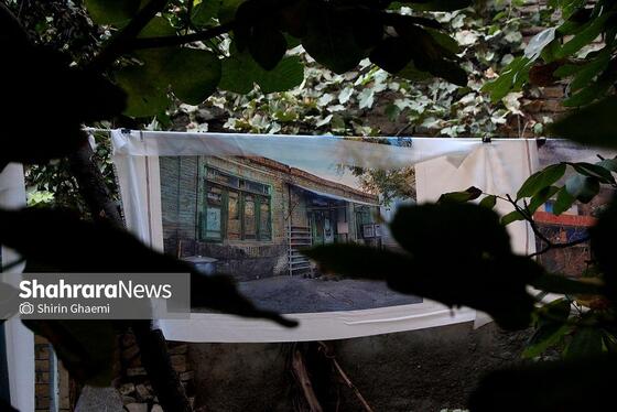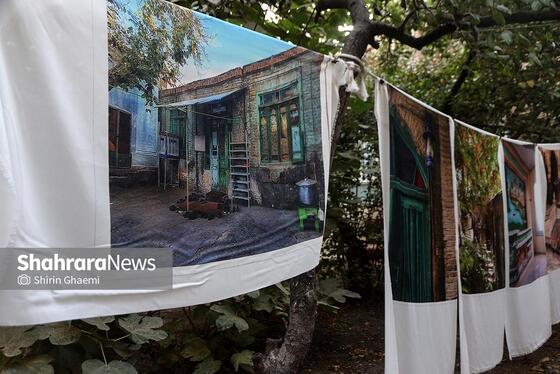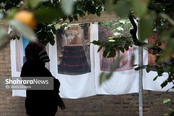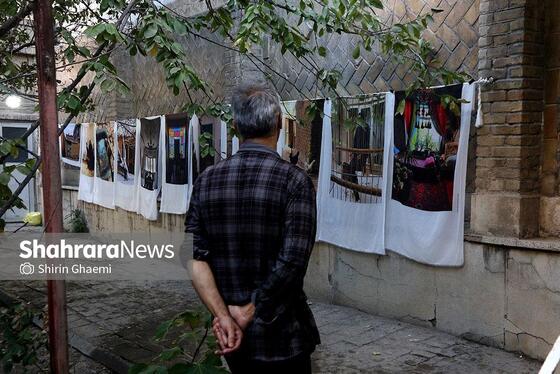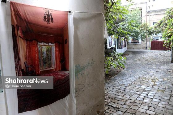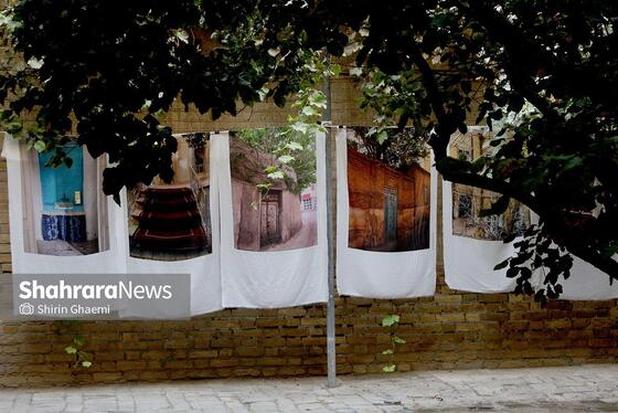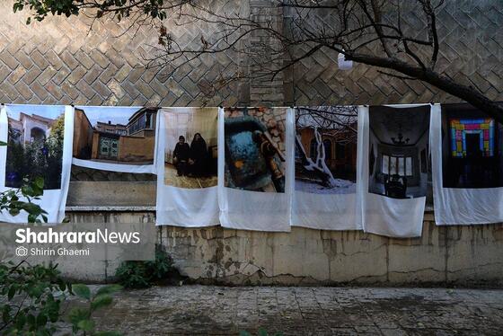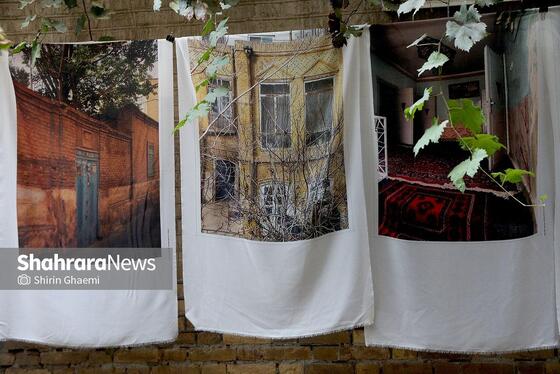 دیوار آجری پسزمینه عکسهای پارچهای شده است؛ شاهدی قدیمی که سالها دیده و شنیده، اما حالا سکوت کرده تا عکسها حرف بزنند.