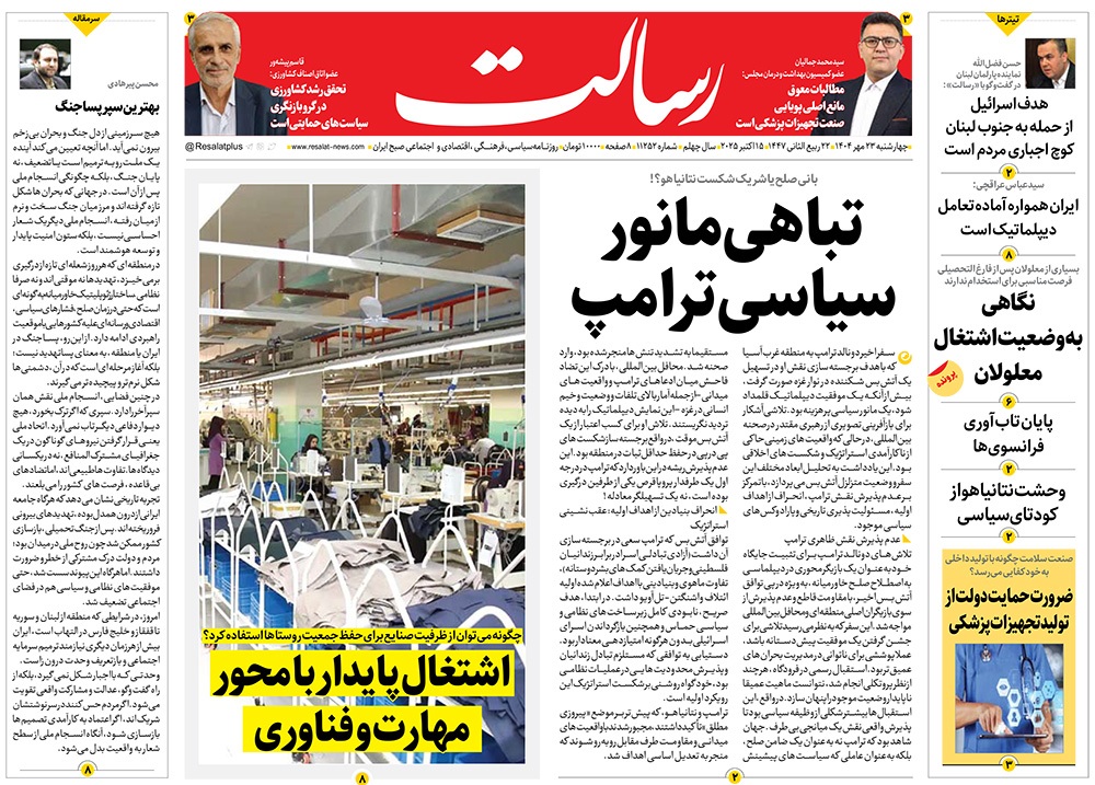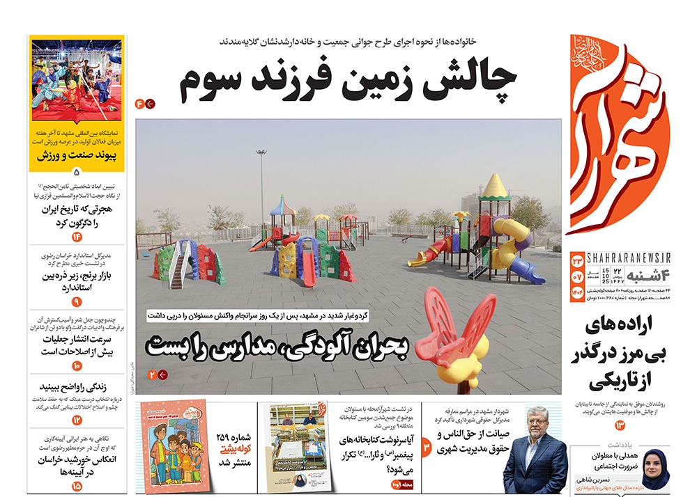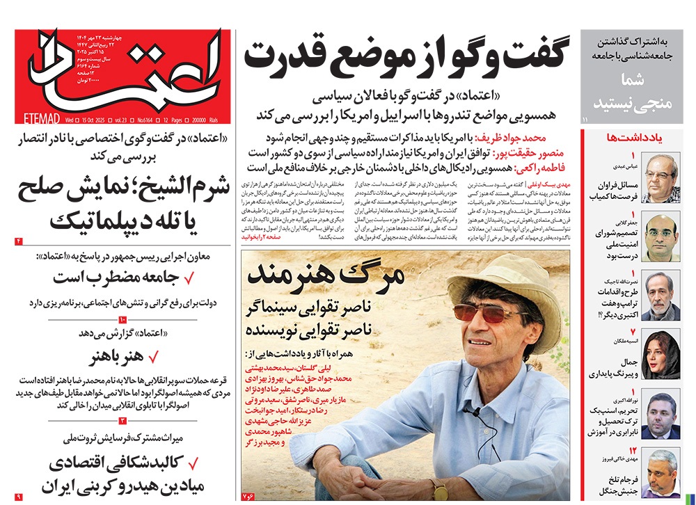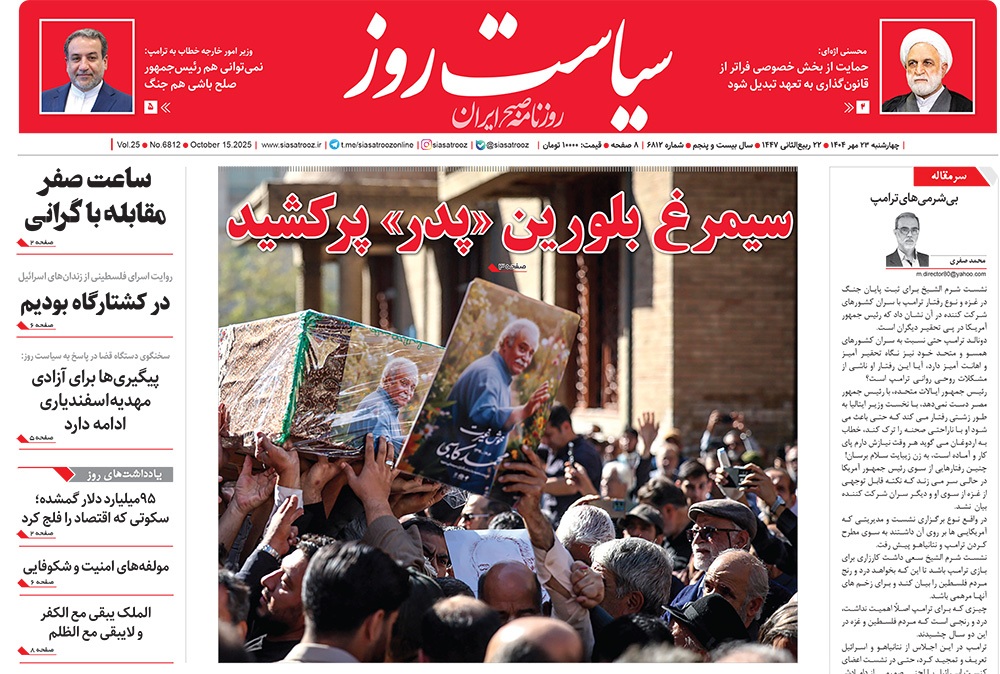 صفحه نخست روزنامه‌های کشور - چهارشنبه ۲۳ مهر ۱۴۰۴