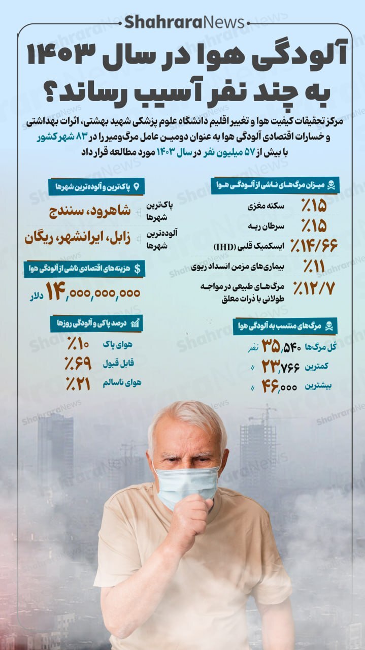 اینفوگرافی| آلودگیها هوا در سال ۱۴۰۳ به چند نفر آسیب رساند؟