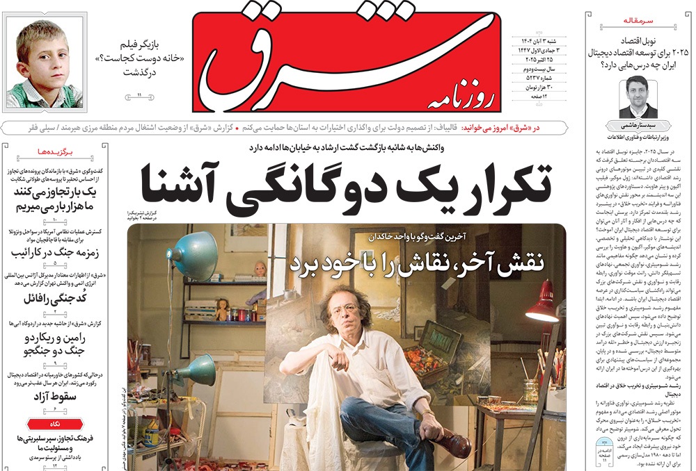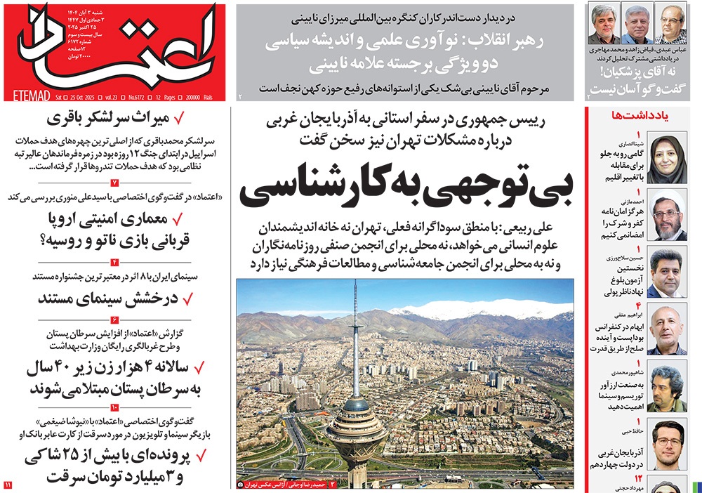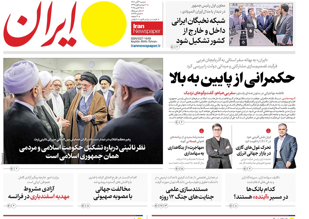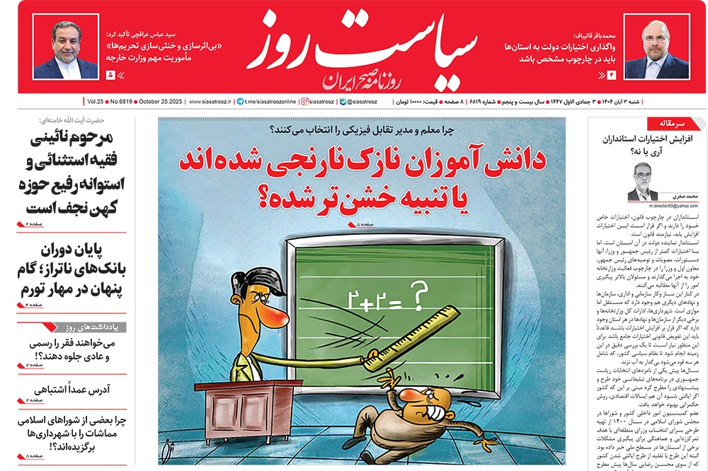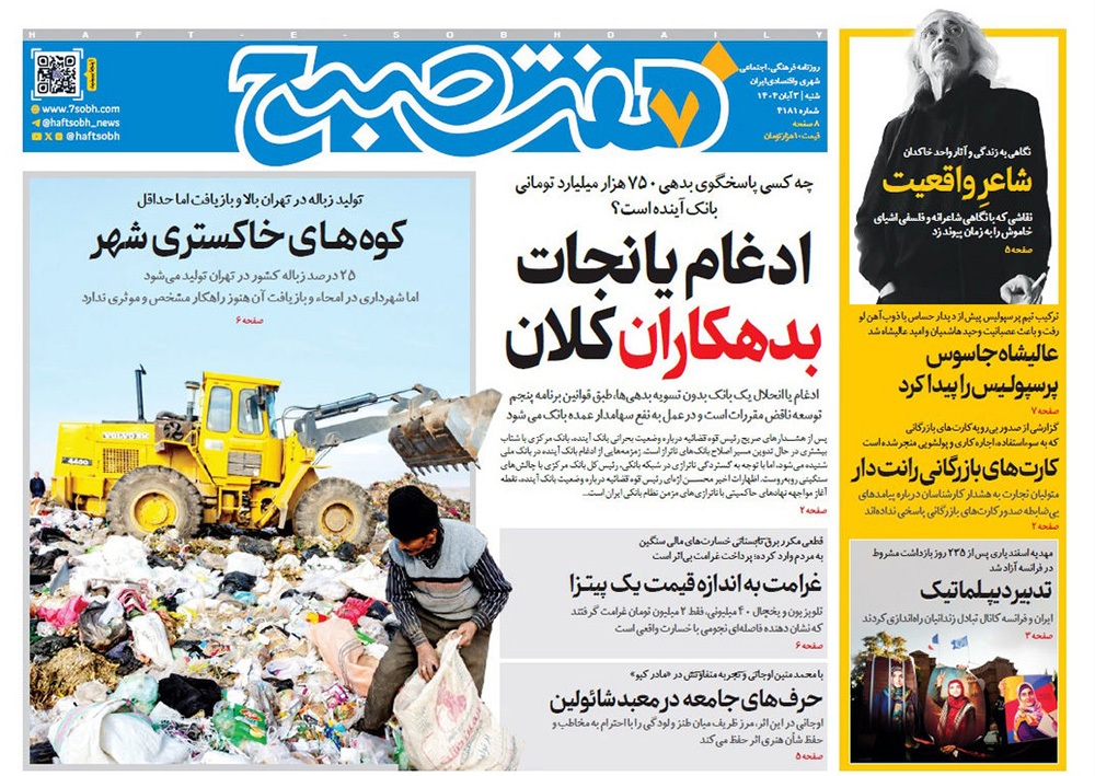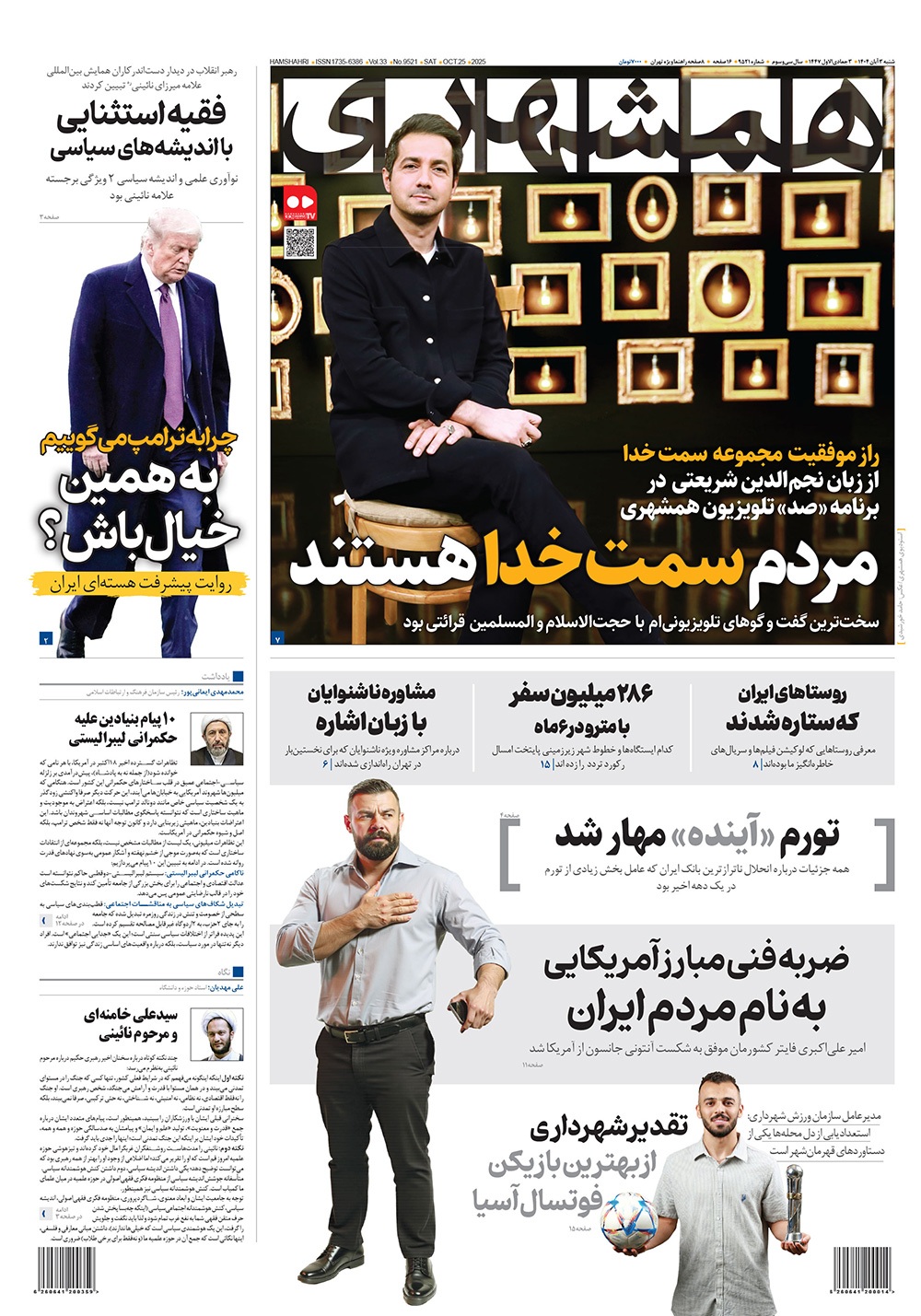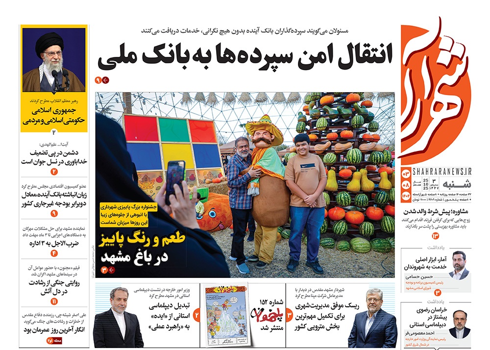 صفحه نخست روزنامه‌های کشور - شنبه ۳ آبان ۱۴۰۴