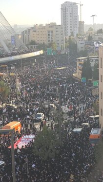 یکی از شرکتکنندگان در این تظاهرات پوستری در دست داشت که اسرائیلیهای سکولار را «انگل» میخواند و از آنان میخواست «فرامین الهی را رعایت کنند».