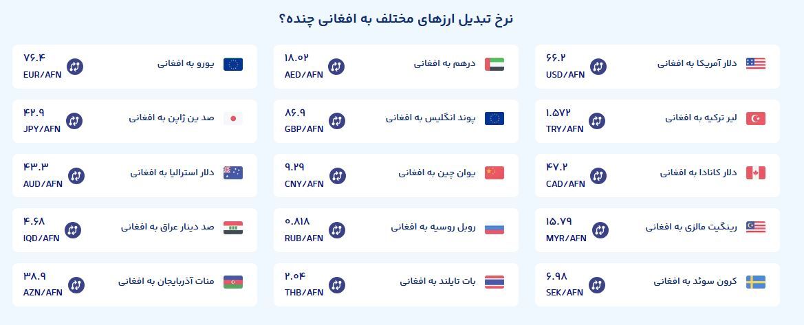 قیمت فعلی افغانی نسبت به هفته گذشته ۰.۶۲ درصد افزایش را نشان میدهد.