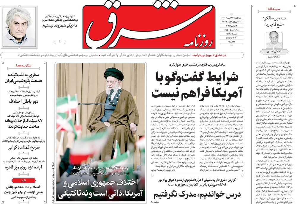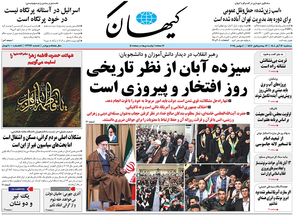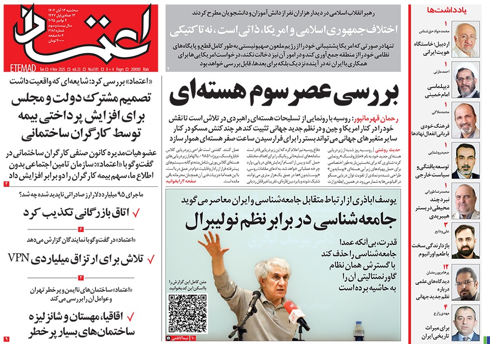 صفحه نخست روزنامه‌های کشور - سه‌شنبه ۱۳ آبان ۱۴۰۴
