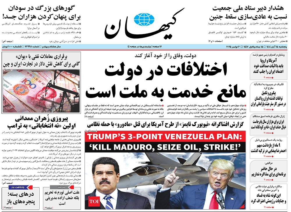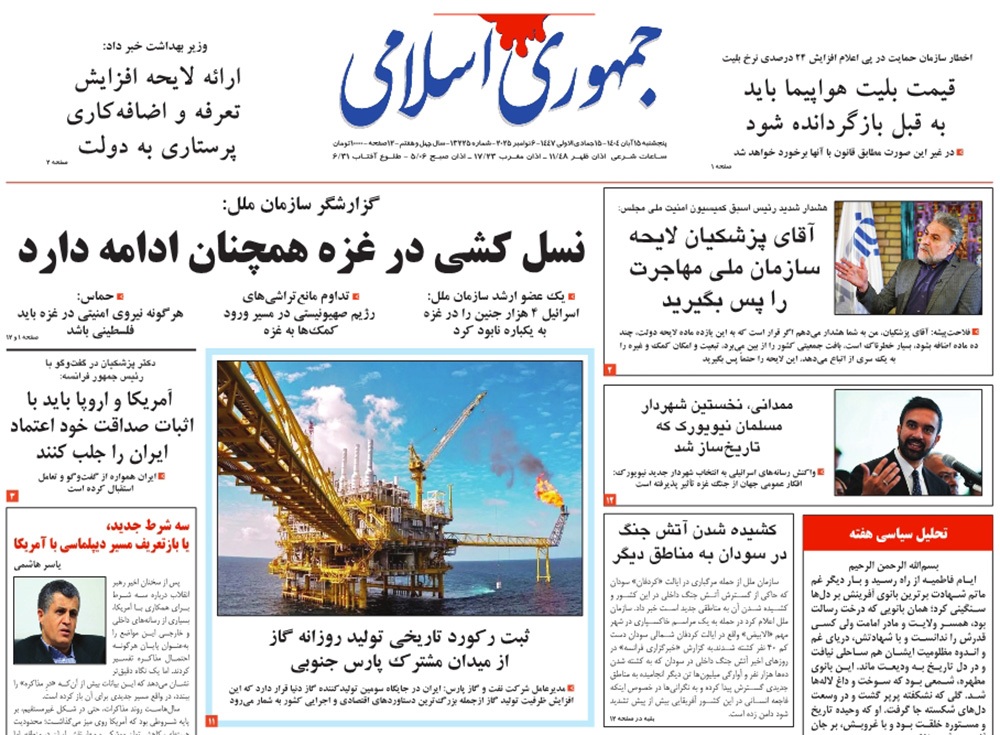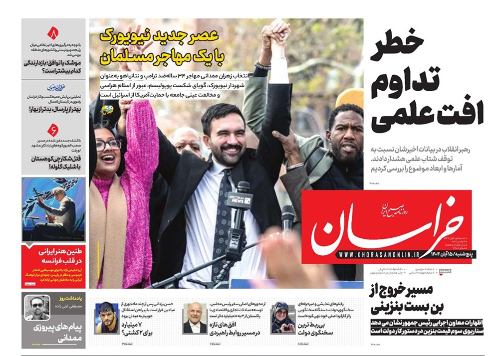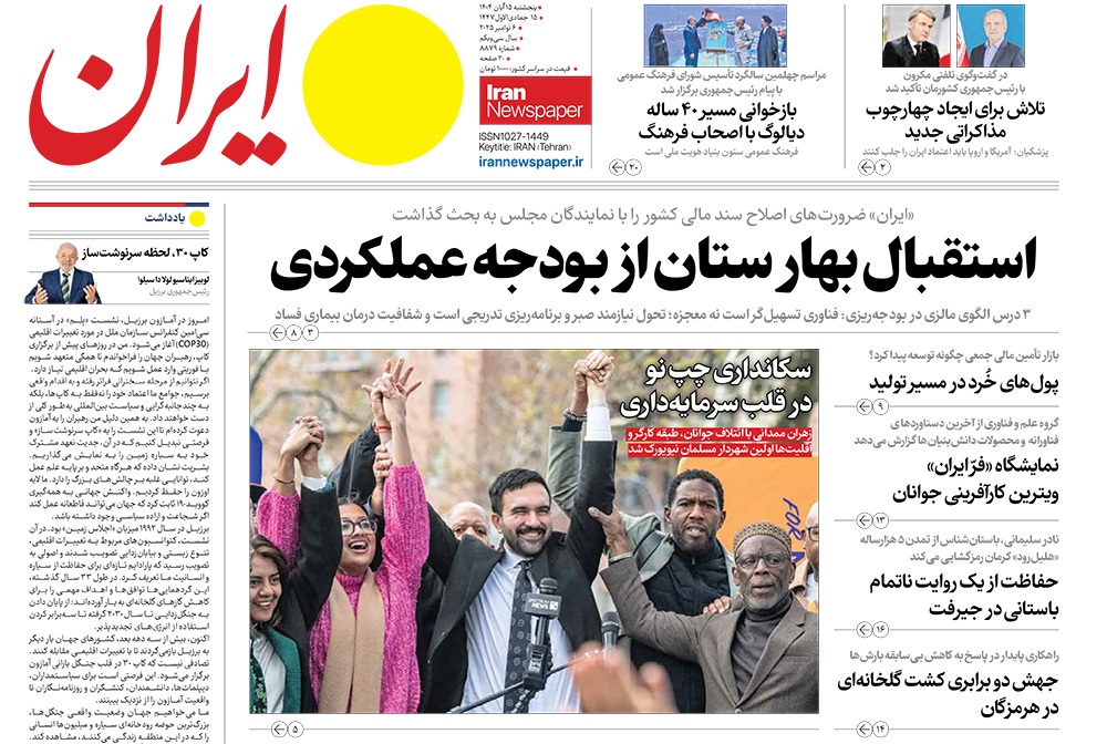 صفحه نخست روزنامه‌های کشور - پنجشنبه ۱۵ آبان ۱۴۰۴