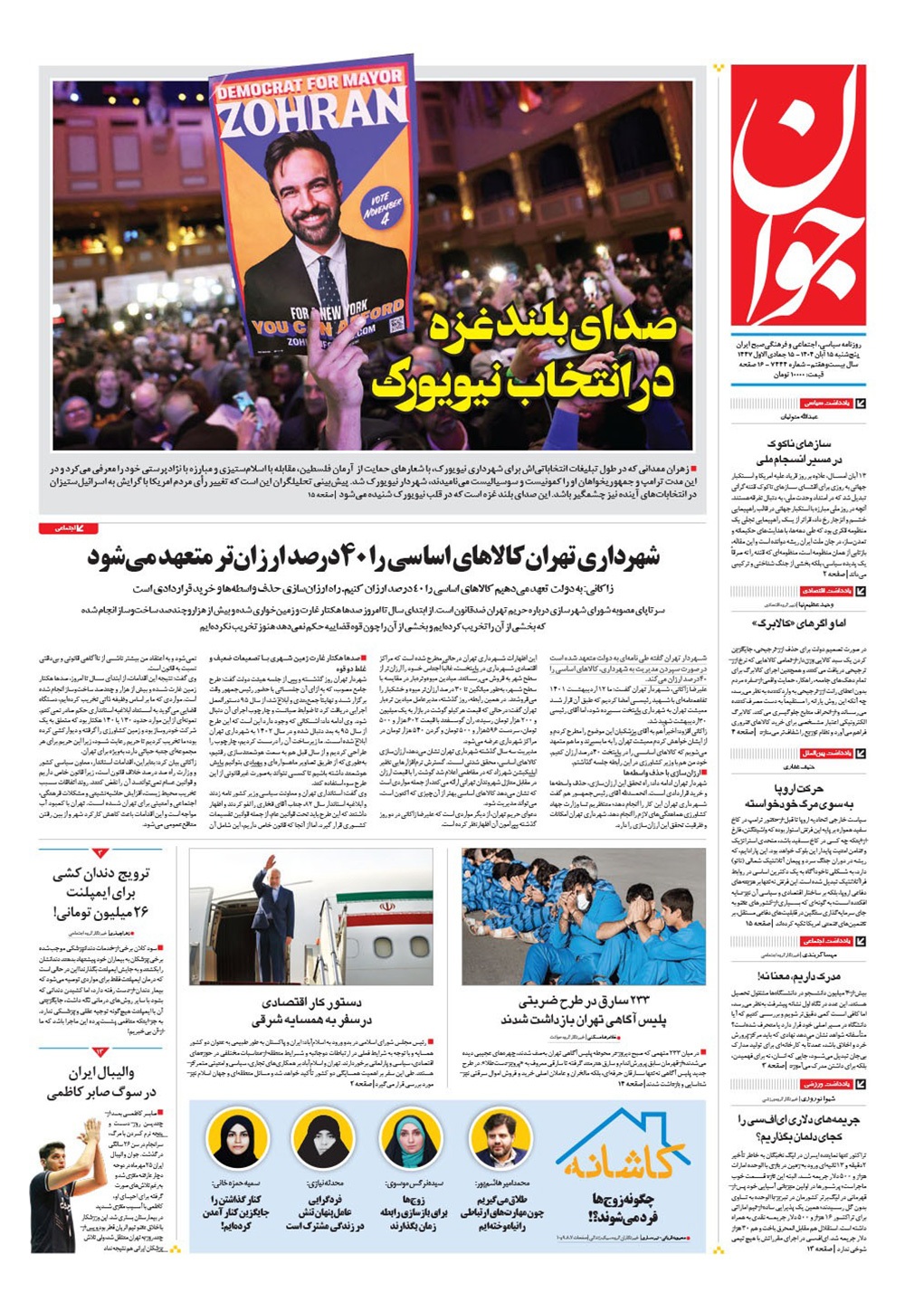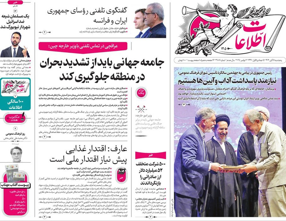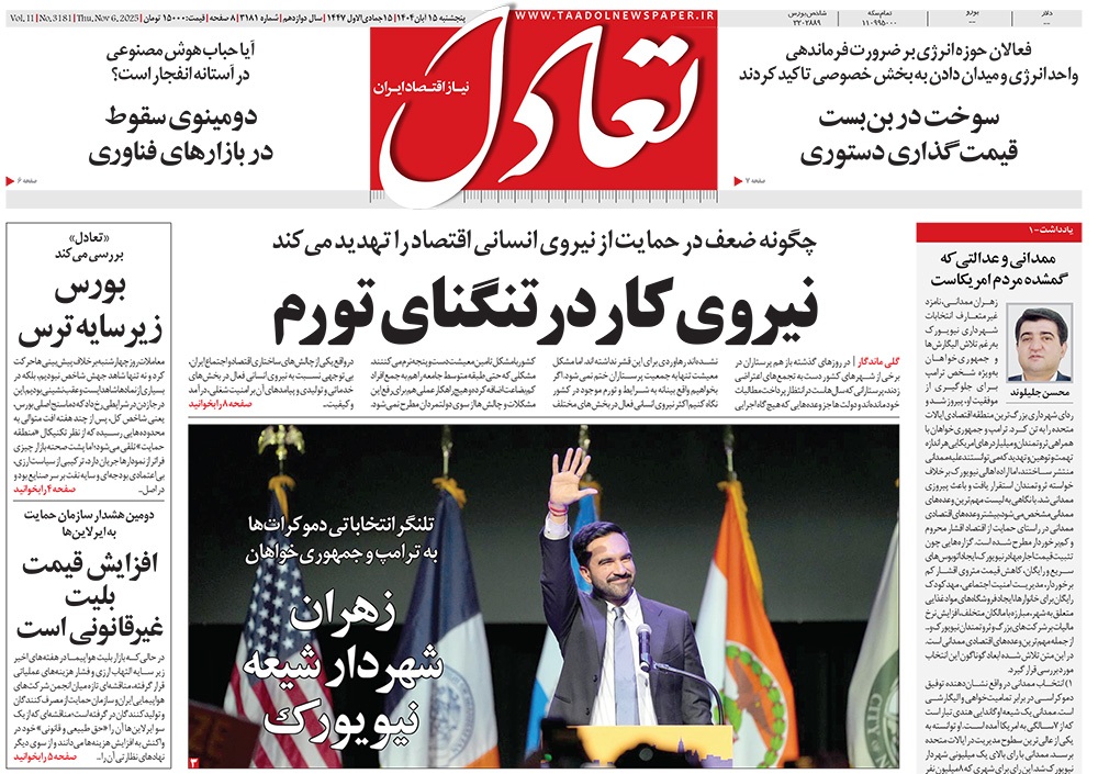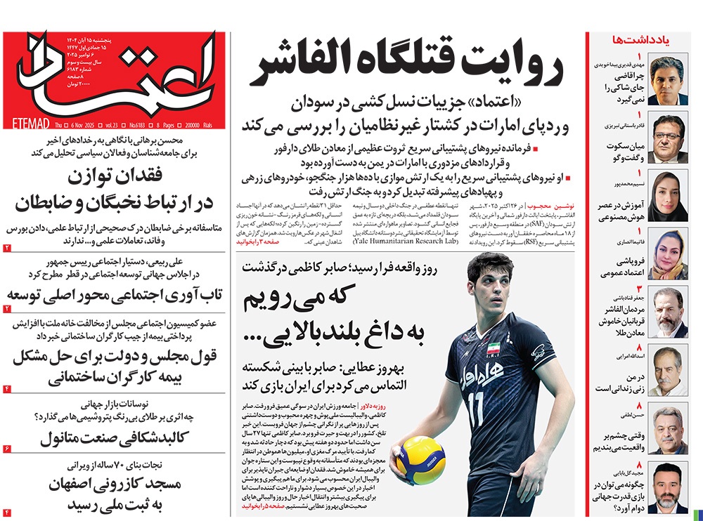 صفحه نخست روزنامه‌های کشور - پنجشنبه ۱۵ آبان ۱۴۰۴