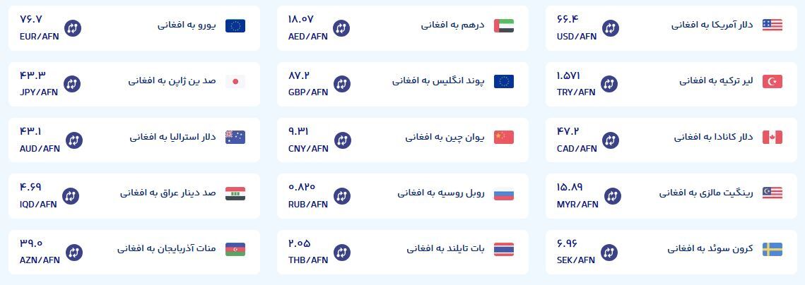 نرخ تبدیل ارز‌های مختلف به افغانی چقدر است؟