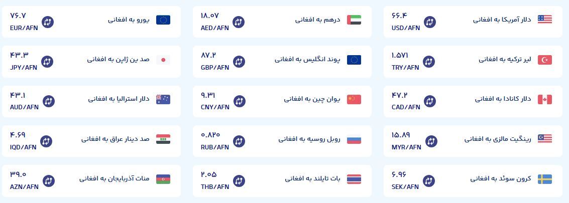 قیمت فعلی افغانی نسبت به هفته گذشته ۰.۰۰ درصد افزایش را نشان میدهد. همچنین بهای هر واحد افغانی در شش ماه گذشته حدود ۳۵.۹۸ درصد افزایش یافته است.