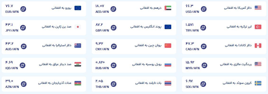 نرخ تبدیل ارز‌های مختلف به افغانی چقدر است؟