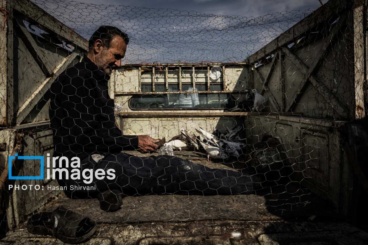 جمعه‌ها در حاشیه اتوبان آزادگان پایتخت، کبوترفروشان اتاقک‌های قفسی موقتی برپا می‌کنند تا پرنده‌های خود را به فروش رسانند. این مجموعه مردانی را به تصویر می‌کشد که ساعت‌ها درون این قفس ها به خرید و فروش کبوتران مشغول‌ هستند. فضایی که برای بسیاری از آن‌ها تنها محل کسب‌وکار نیست بلکه بخش بزرگی از زندگی روزمره‌شان را شکل می‌دهد. اکبر ۵۹ ساله، می‌گوید پنجاه سال از عمرش را در این قفس‌ها گذرانده است. زن و فرزندانش او را به دلیل وابستگی افراطی‌اش به پرنده‌ها ترک کرده‌اند و زندگی اش شبیه قفسی شده است که خودش را در آن محبوس کرده و کلید رهایی‌اش را گم کرده است.