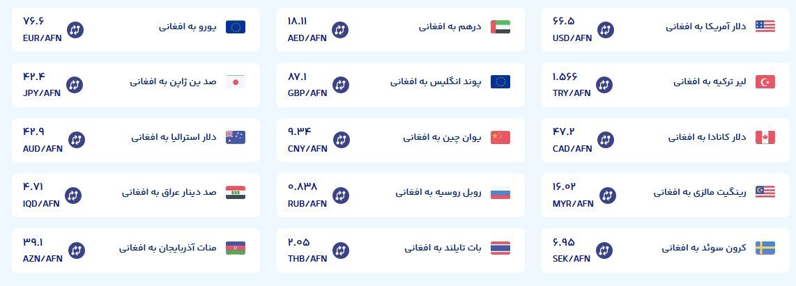 نرخ تبدیل ارز‌های مختلف به افغانی چقدر است؟