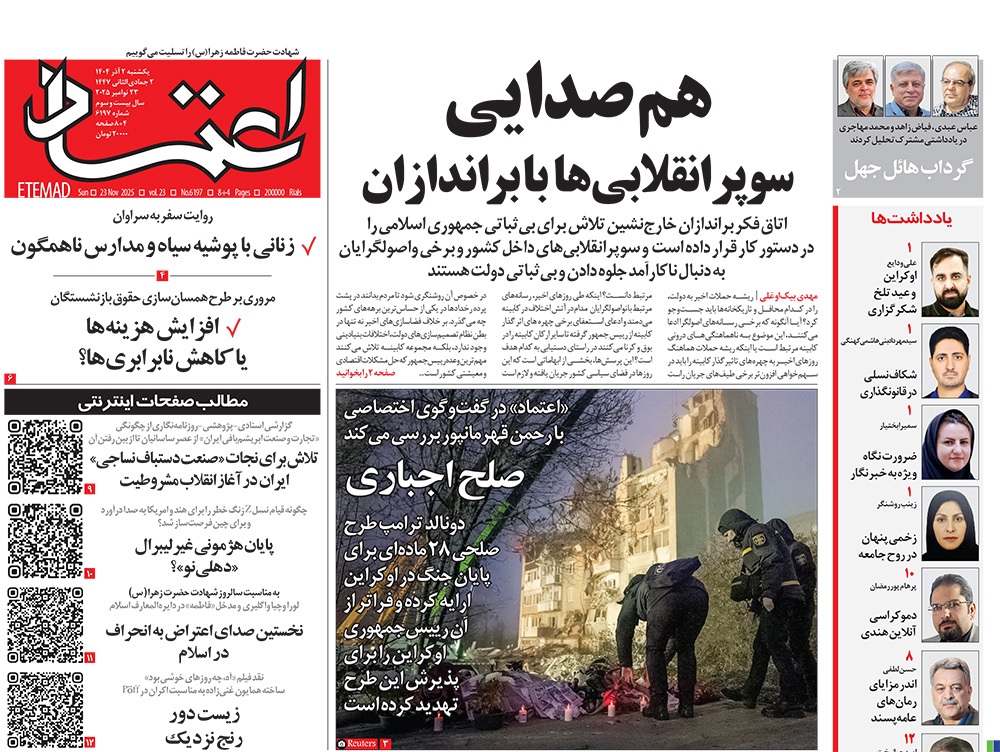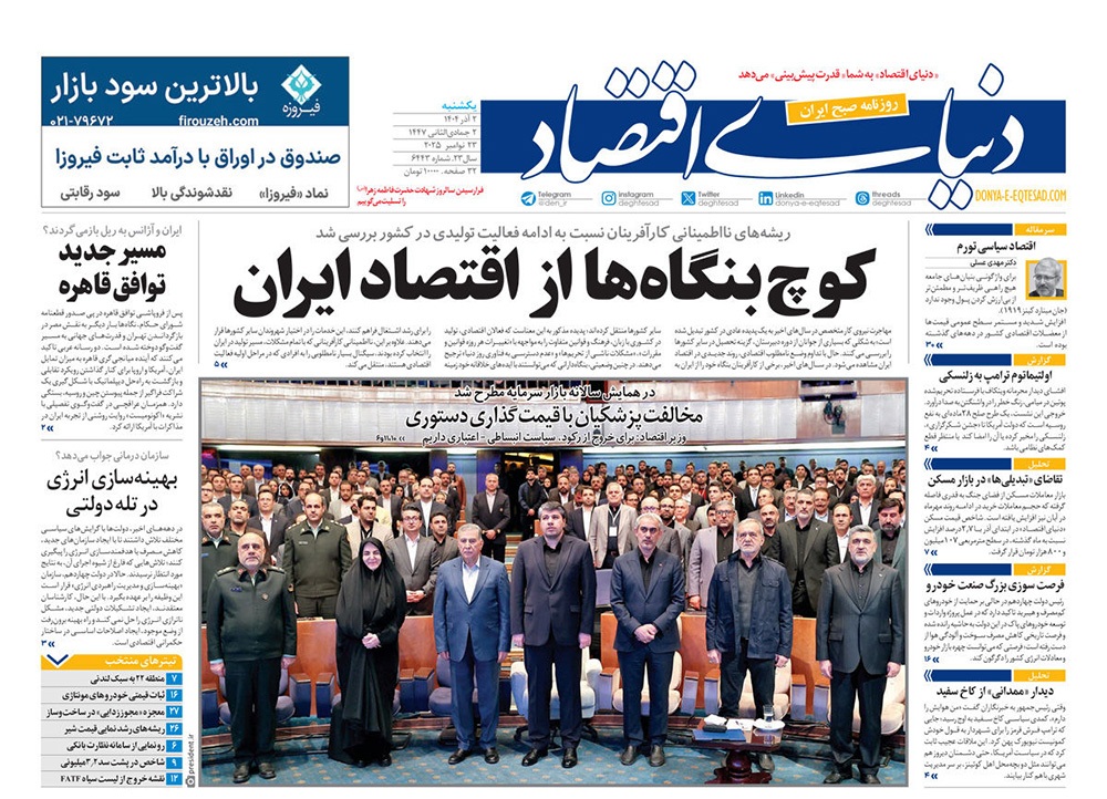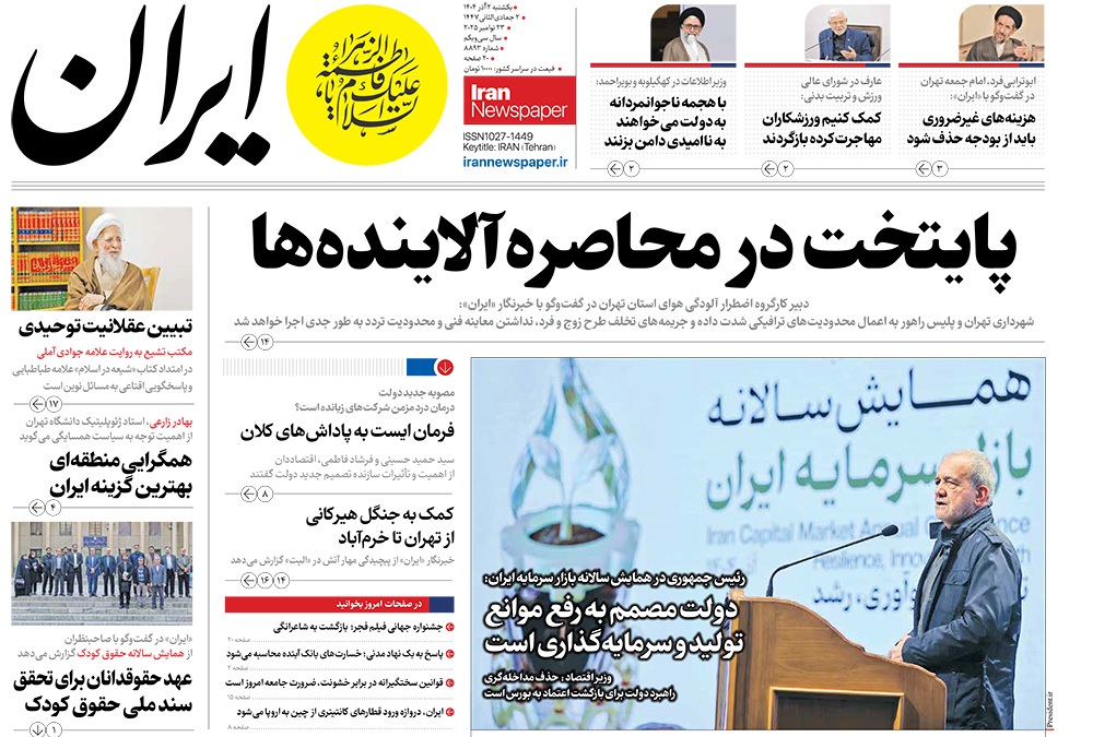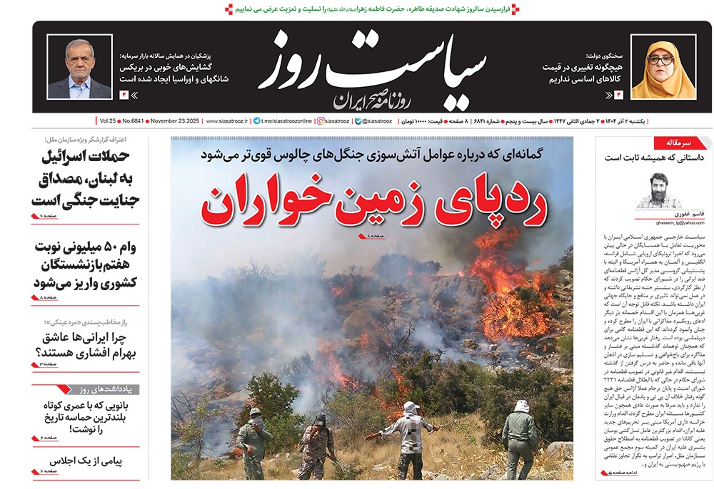 صفحه نخست روزنامههای کشور - یکشنبه ۲ آذر ۱۴۰۴