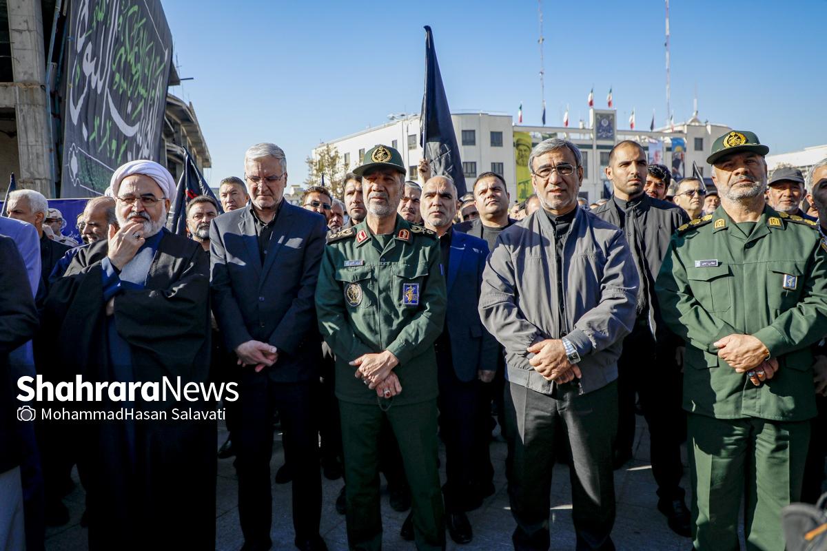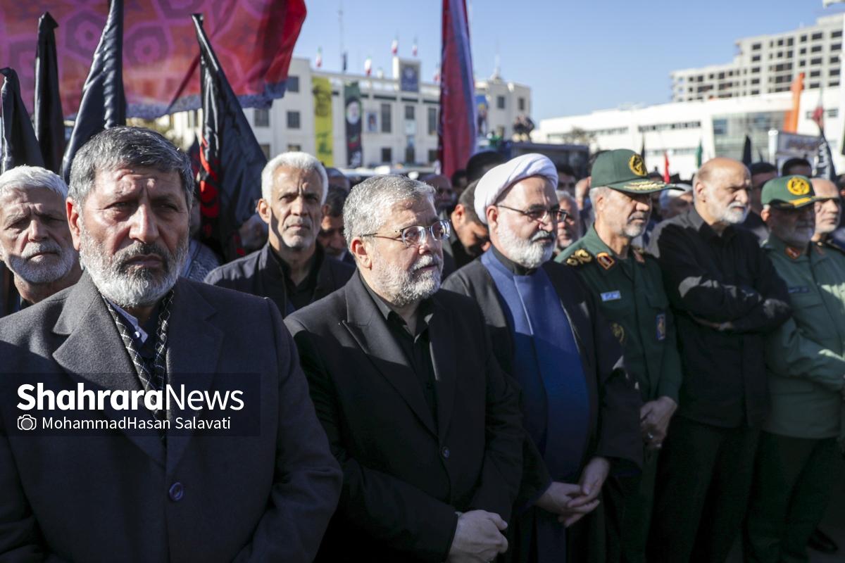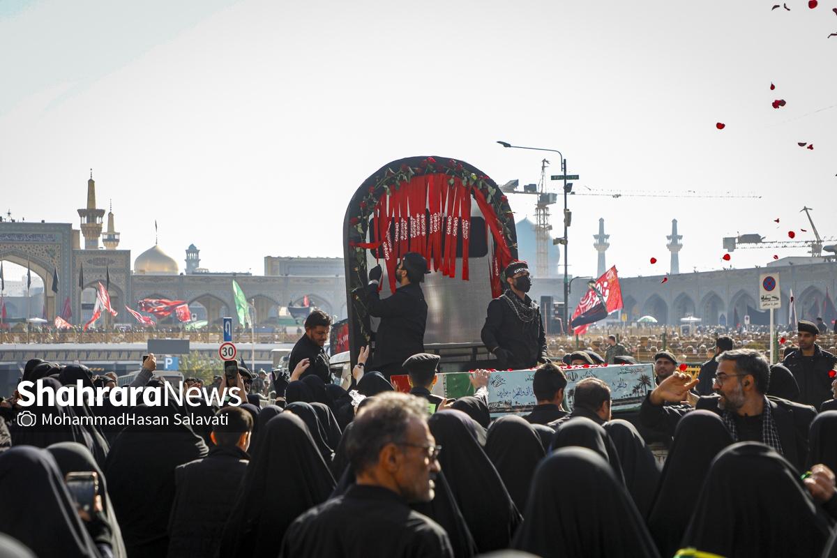 چهاردهمین اجتماع باشکوه عزاداران فاطمی و تشییع پیکر مطهر ۱۳ شهید گمنام دوران دفاع مقدس، صبح دوشنبه ۳ آذر ۱۴۰۴ در میدان شهدا با حضور هزاران زائر و مجاور در میان اشک و ماتم عزاداران تا حرم مطهر رضوی برگزار شد.