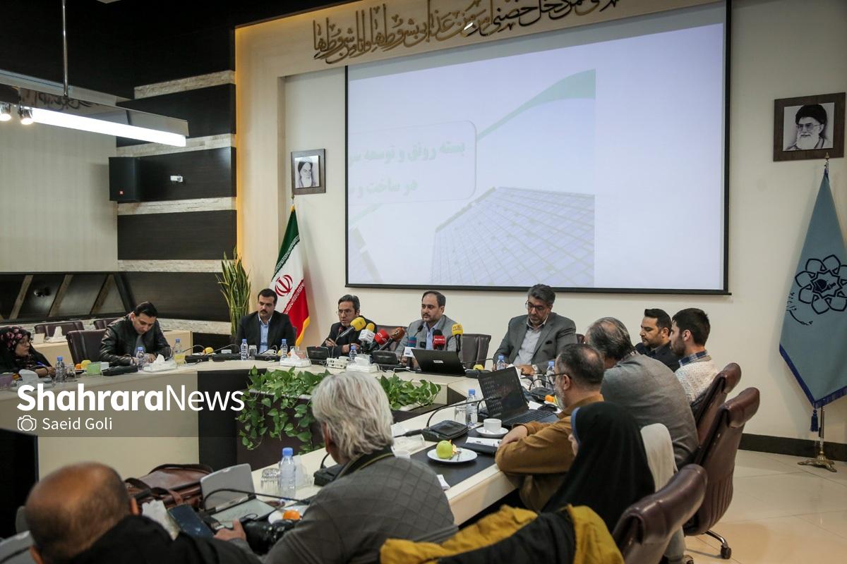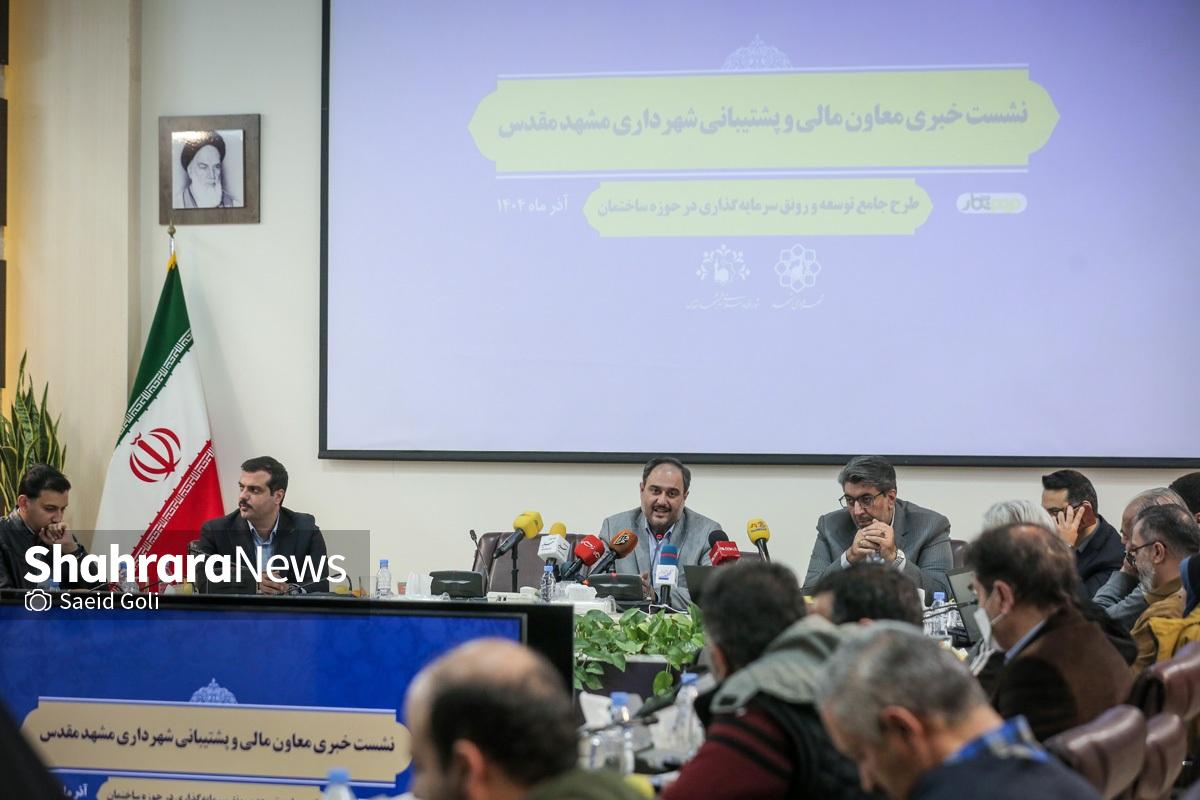 نشست خبری معاون مالی و پشتیبانی شهرداری مشهد با موضوع تشریح بسته رونق ساخت‌وساز، صبح امروز (دوشنبه، ۱۰ آذر ۱۴۰۴) برگزار شد.