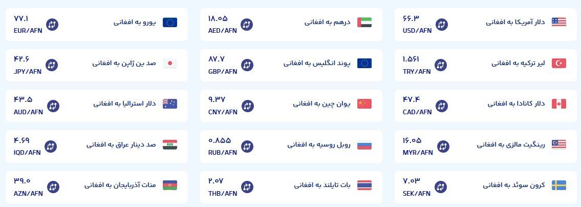 نرخ تبدیل ارز‌های مختلف به افغانی چقدر است؟