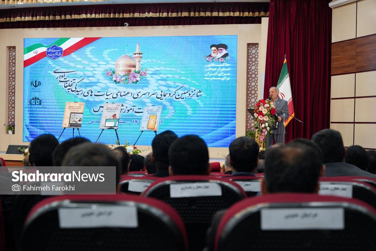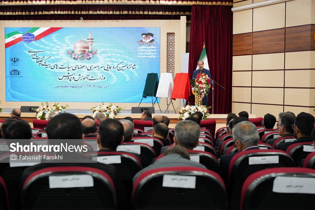 مراسم اختتامیه شانزدهمین گردهمایی اعضای هیئتهای رسیدگی به تخلفات اداری آموزش و پرورش سراسر کشور امروز (۱۳ آذر ۱۴۰۴) در دانشگاه فرهنگیان شهید بهشتی مشهد با حضور علیرضا کاظمی، وزیر آموزش و پرورش، برگزار شد.