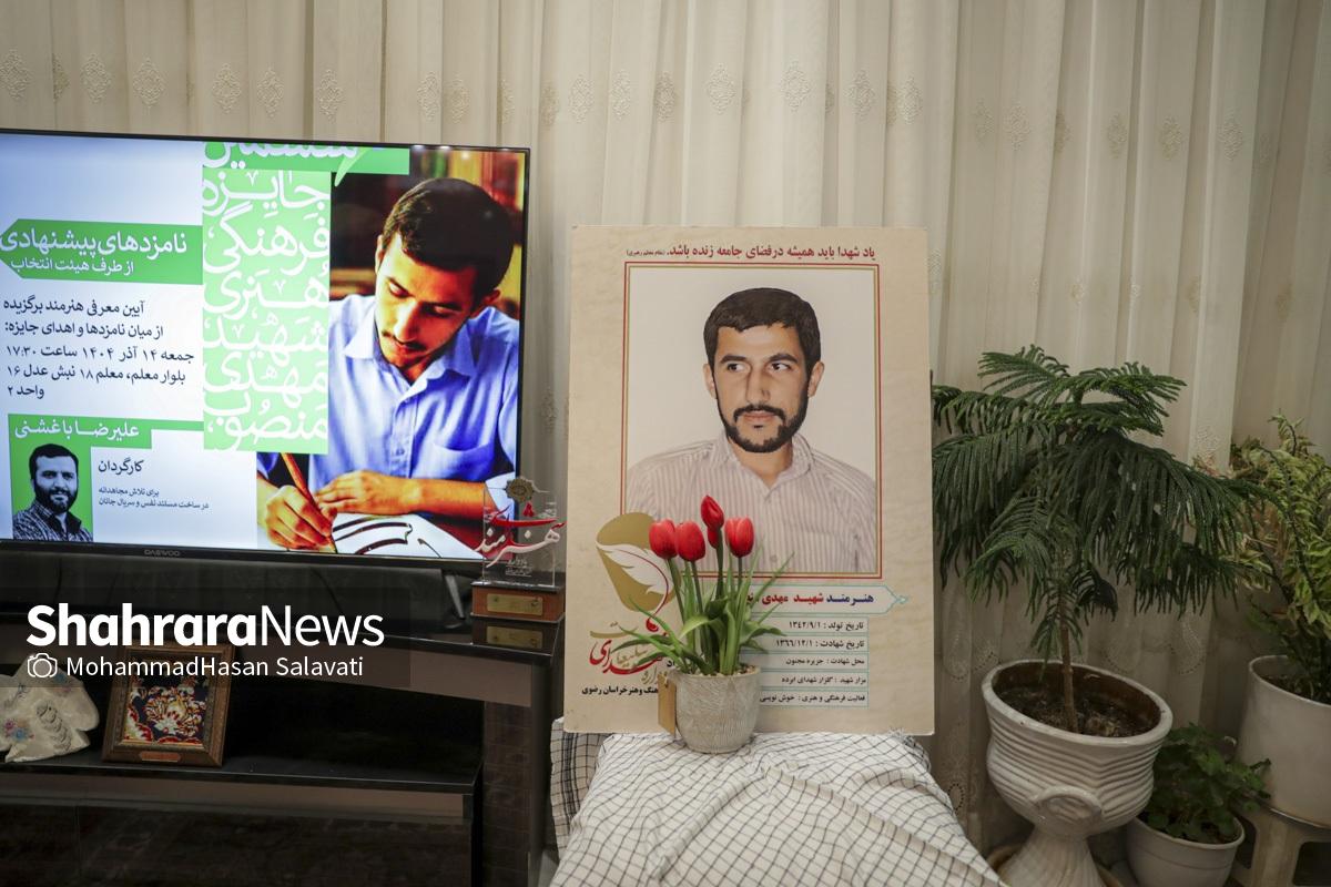 مراسم پایانی ششمین دوره جایزه فرهنگی و هنری «هنرمند شهید مهدی منصوب» عصر امروز، جمعه ۱۴ آذرماه، با حضور جمعی از فعالان متعهد عرصه فرهنگ و هنر، خانواده شهید و مسئولان فرهنگی در منزل شهید منصوب برگزار شد. در این آیین که با هدف معرفی برگزیده این دوره انجام شد، چهار نامزد نهایی شامل علیرضا باغشنی، عقیل رحمانی، محمد جهانپا و رضا غریبی که پیشتر از میان بیش از ۲۰ چهره فرهنگی و رسانهای استان انتخاب شده بودند، معرفی شدند.