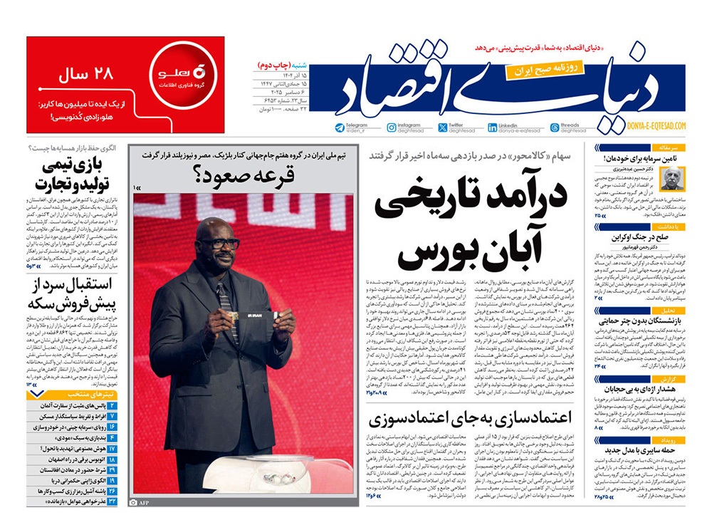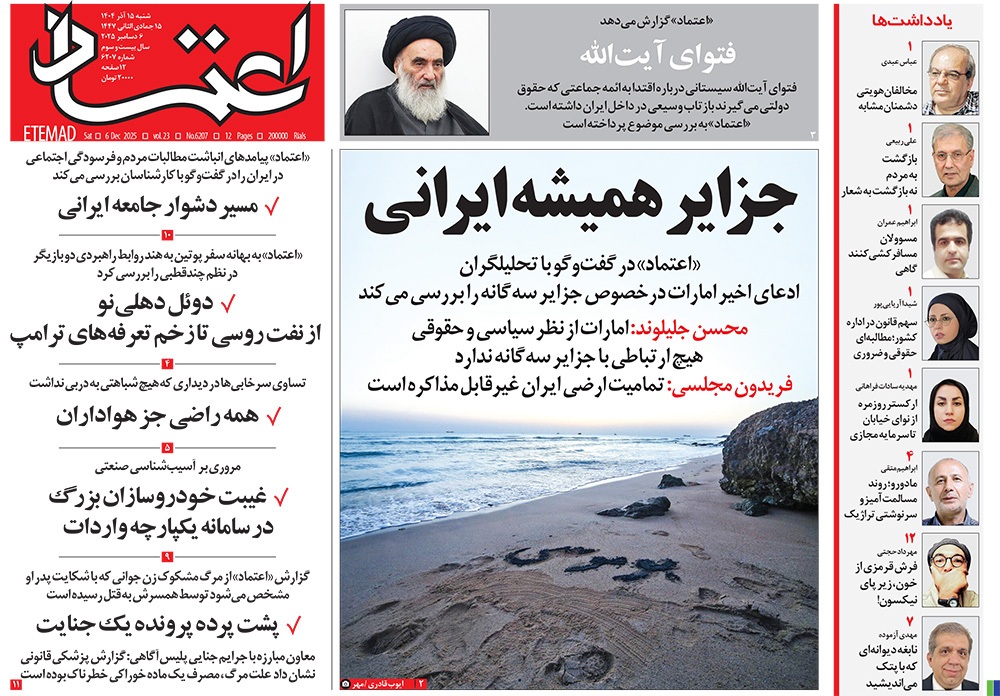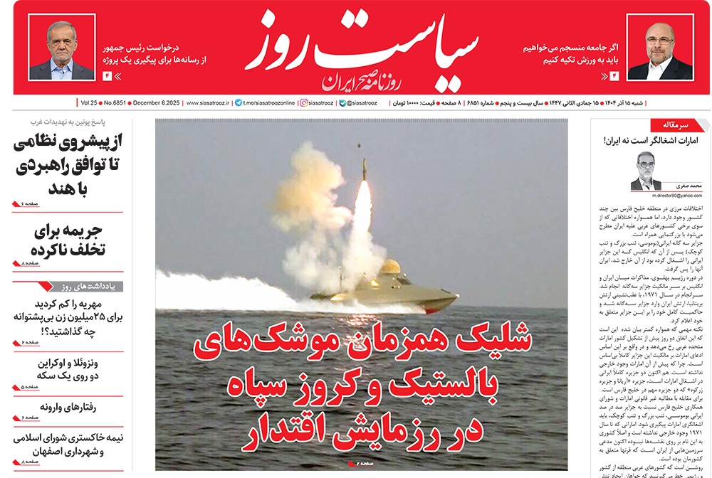 صفحه نخست روزنامههای کشور - شنبه ۱۵ آذر ۱۴۰۴