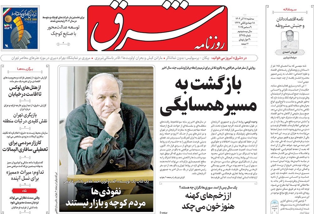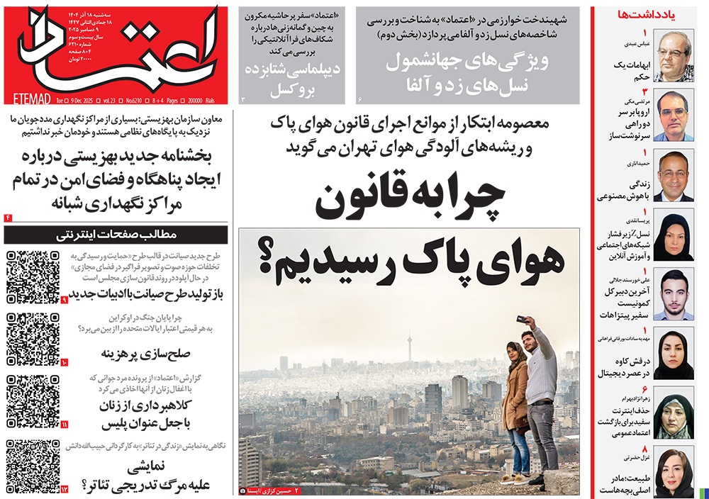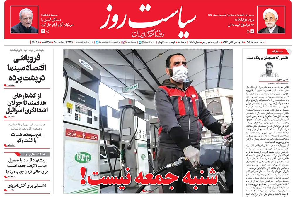 صفحه نخست روزنامه‌های کشور - سه‌شنبه ۱۸ آذر ۱۴۰۴
