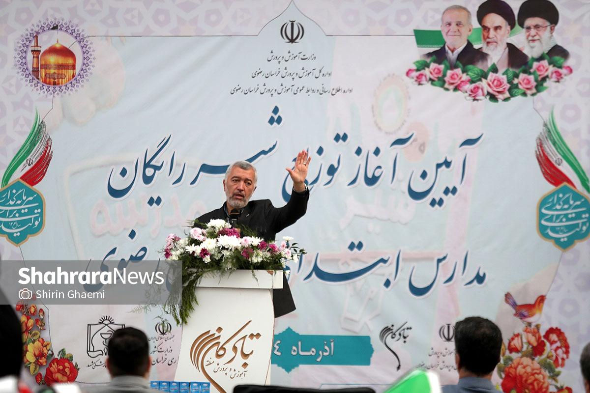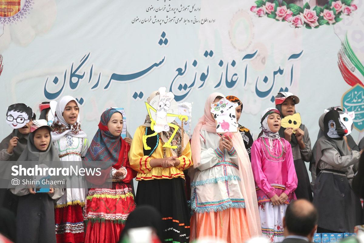 مراسم آغاز توزیع شیر در مدارس خراسان رضوی با حضور مدیران آموزش و پرورش برگزار شد .