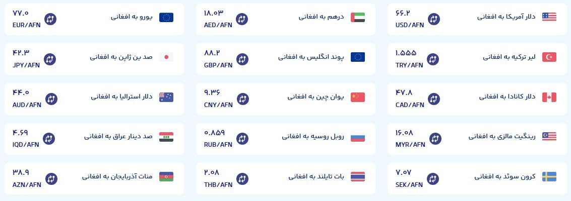 نرخ تبدیل ارز‌های مختلف به افغانی چقدر است؟