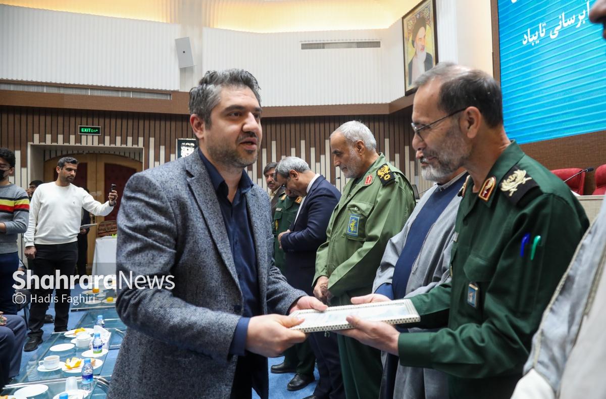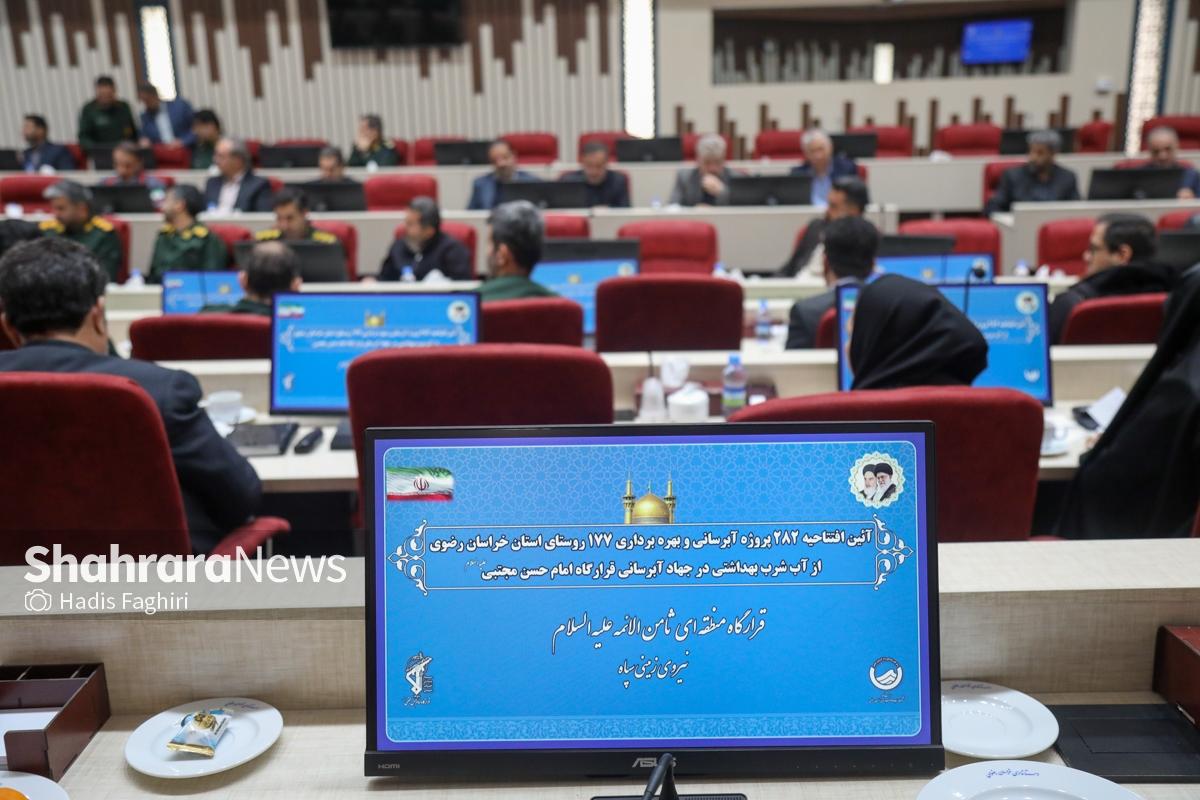 آیین افتتاحیه ۲۸۲ پروژه آب‌رسانی و بهره‌برداری ۱۷۷ روستای استان خراسان رضوی از آب شرب بهداشتی در جهاد آب‌رسانی قرارگاه امام‌حسن‌مجتبی(ع)، با حضور مسئولان کشوری و استانی به صورت ویدئوکنفرانس با شهرستان‌های مرزی، امروز در استانداری خراسان رضوی، ساختمان شهدای دولت، سالن سردار شهید سلیمانی برگزار شد.