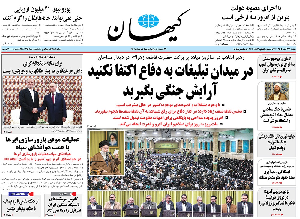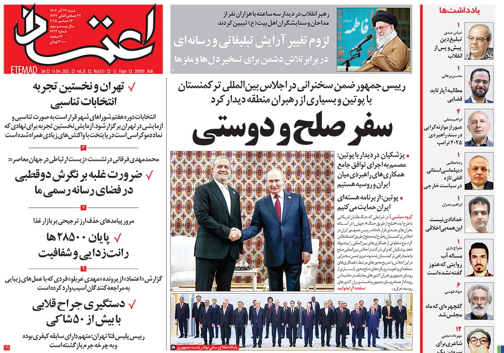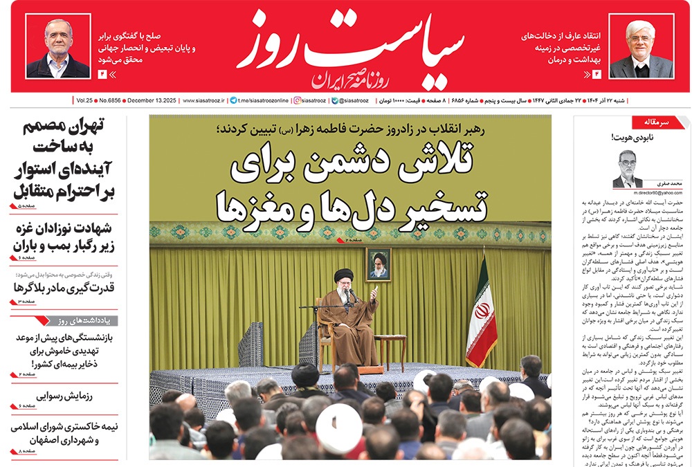 صفحه نخست روزنامه‌های کشور - شنبه ۲۲ آذر ۱۴۰۴