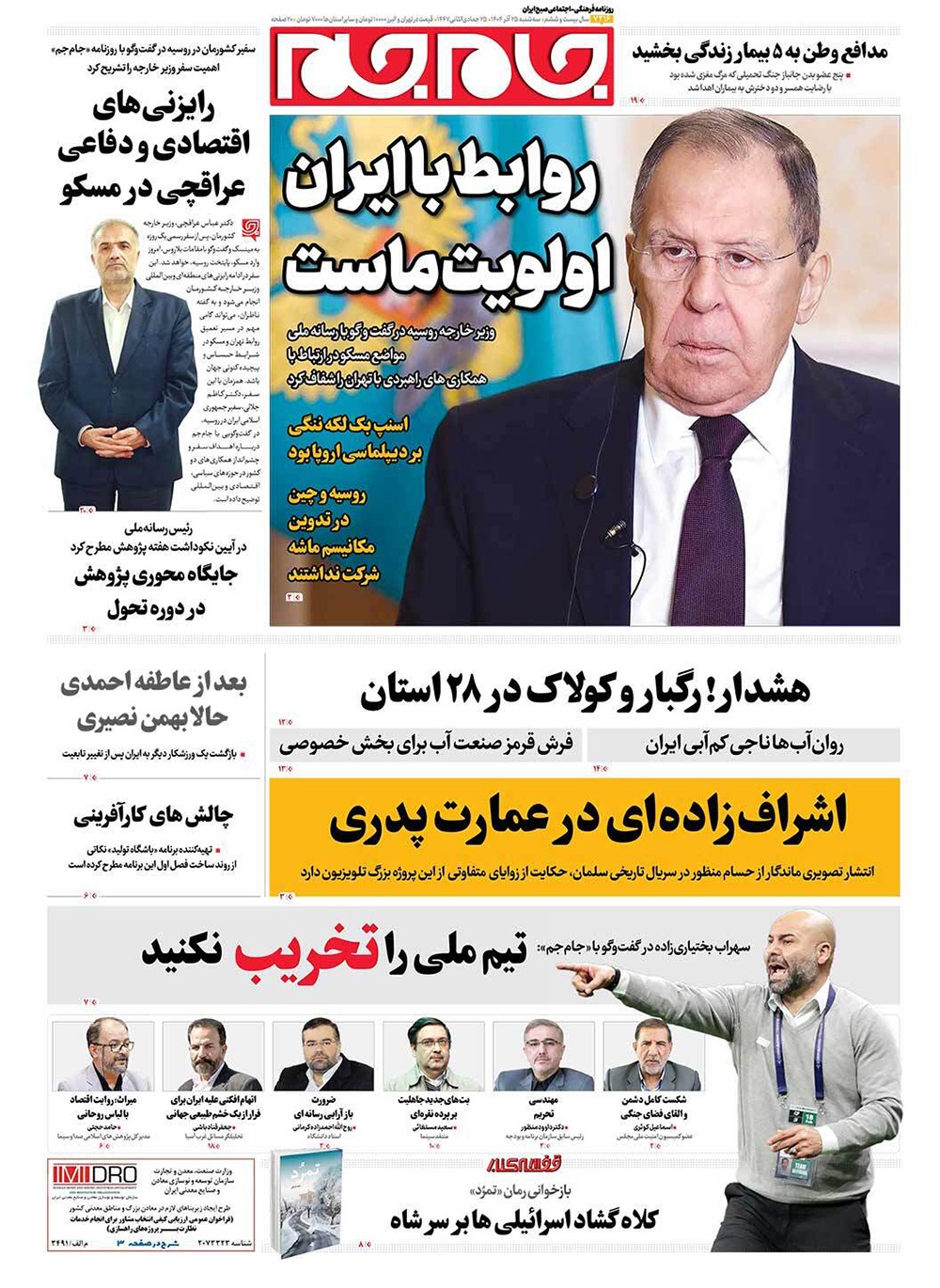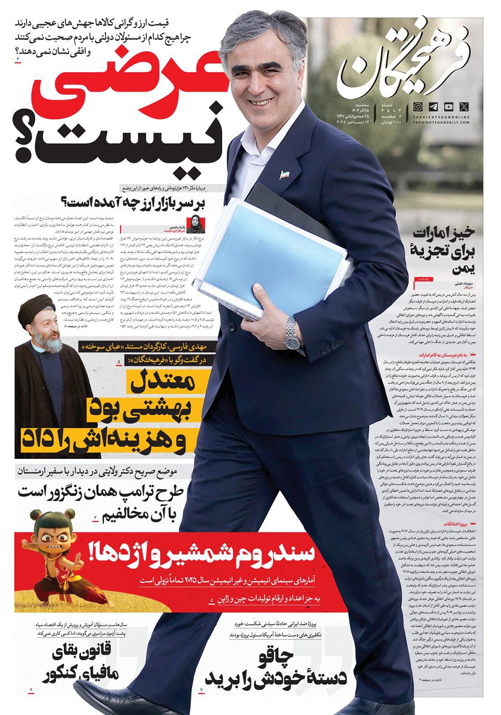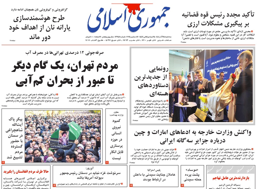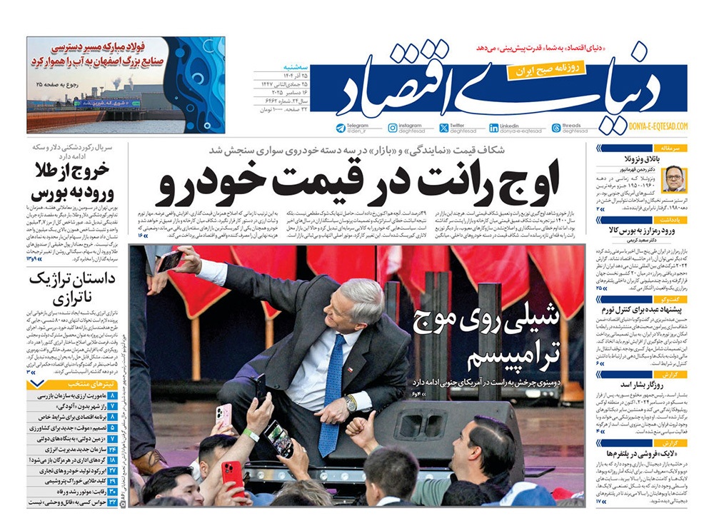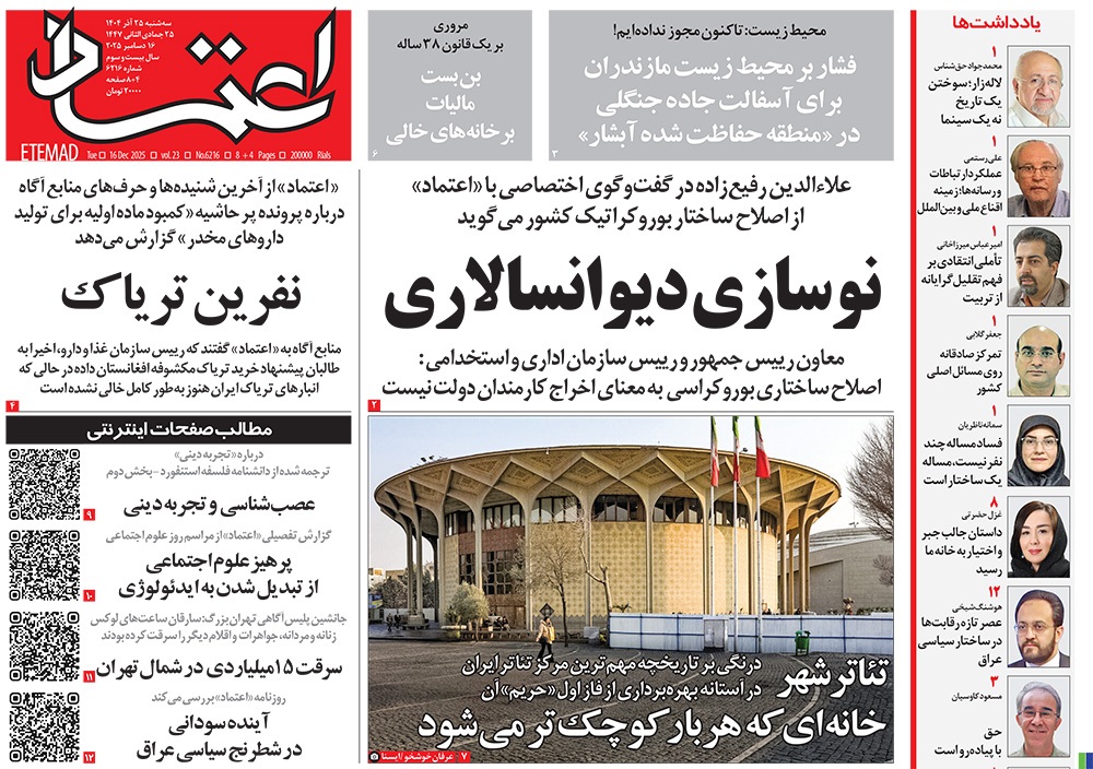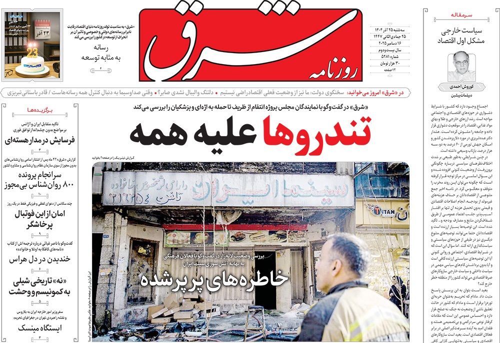 صفحه نخست روزنامه‌های کشور - سه‌شنبه ۲۵ آذر ۱۴۰۴