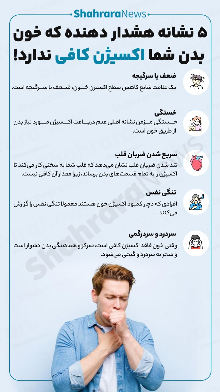 اینفوگرافی| ۵ نشانه هشدار دهنده که خون بدن شما اکسیژن کافی ندارد!