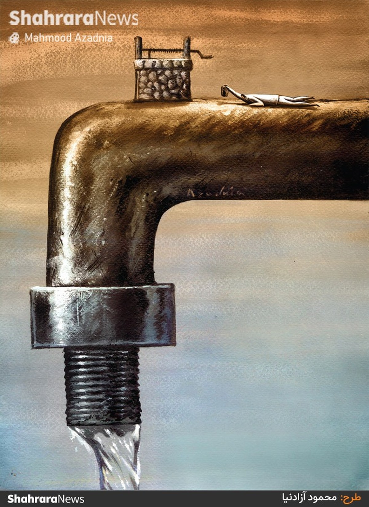بی‌تدبیری در حفظ منابع آبی یکی از بزرگترین دلایل هدر رفت آب است. به باور کارشناسان در دهه‌های اخیر به دلیل ضعف در مدیریت و ناتوانی در به‌روزرسانی فناوری‌ها، به نقطه بحران آبی رسیده‌ایم. طرح از محمود آزادنیا، کارتونیست روزنامه شهرآرا