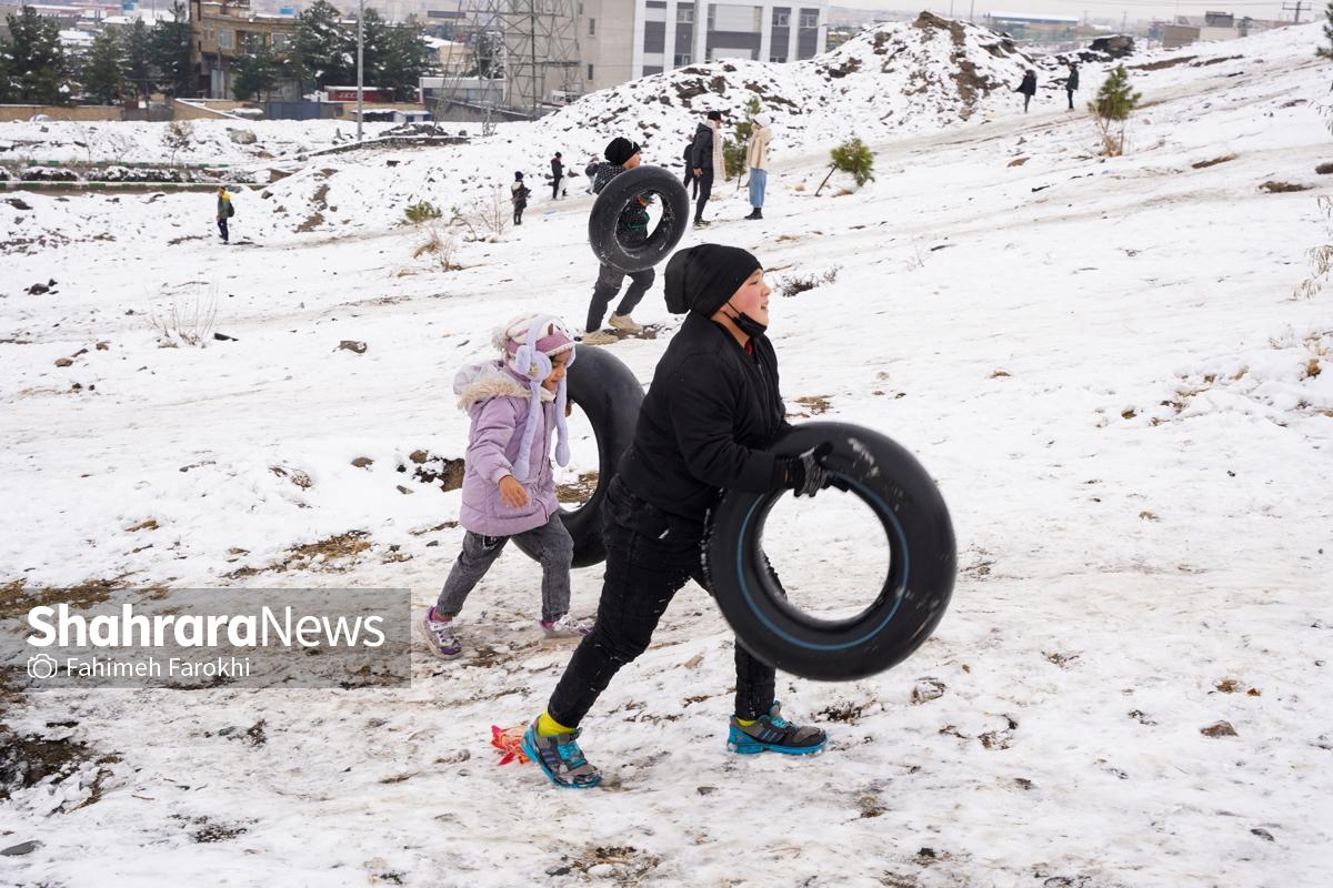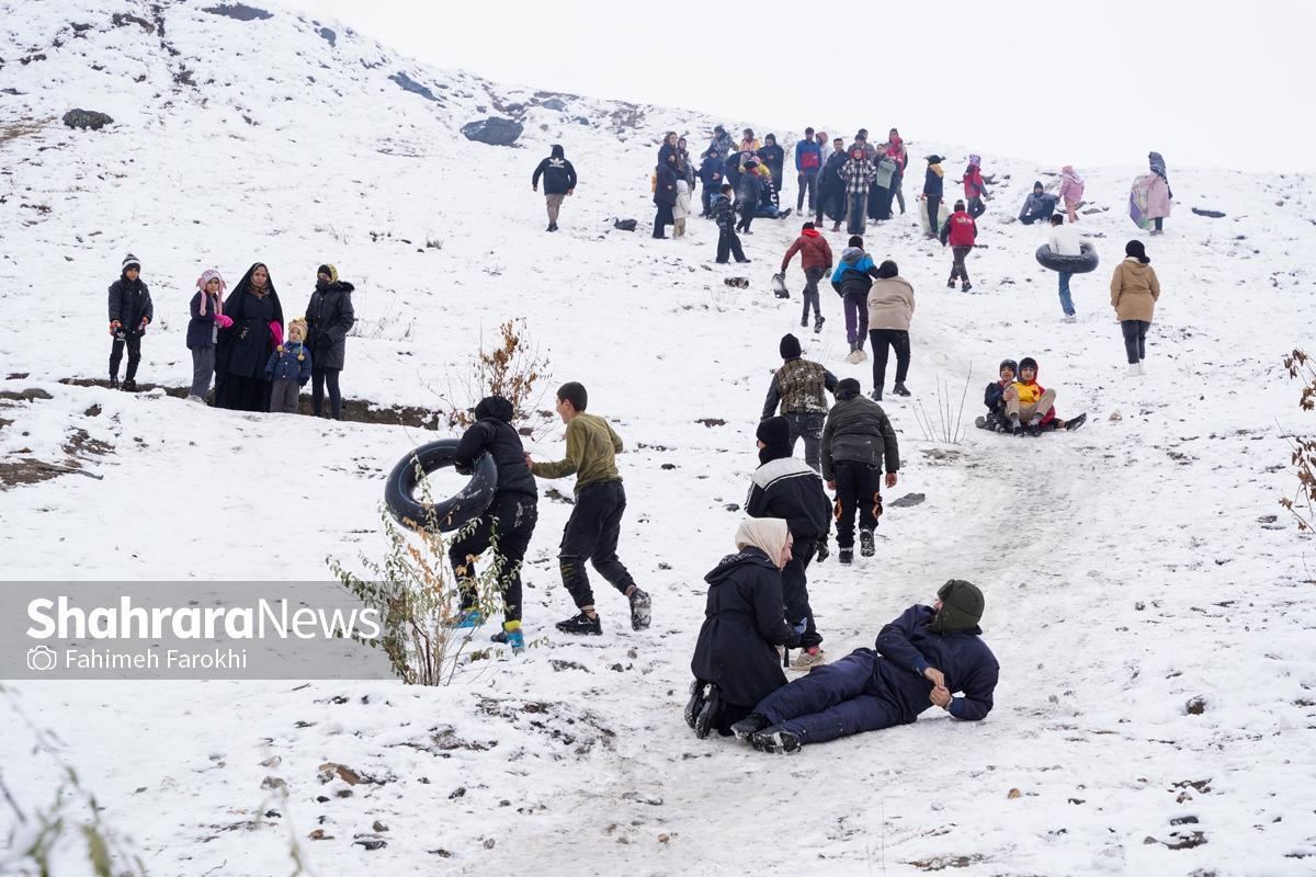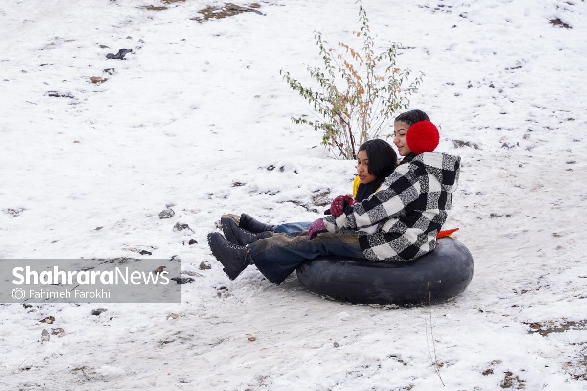 مردم مشهد با اولین بارش برف پاییزی،در مناطق ییلاقی به تفریحات برفی پرداختند.