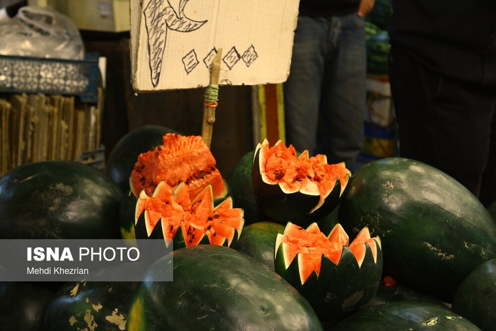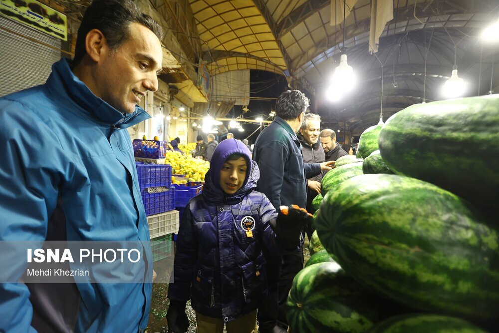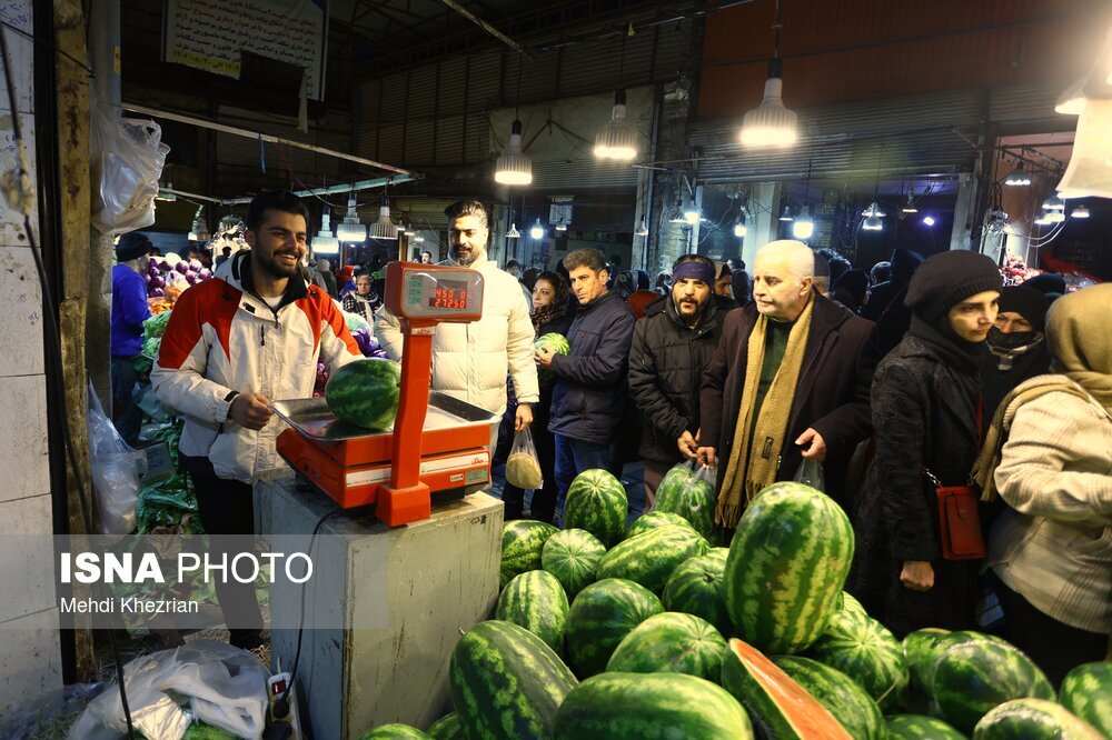 هم‌زمان با نزدیک‌شدن به بلندترین شب سال ۱۴۰۴، بازار تره‌بار همدان حال‌وهوای یلدایی به خود گرفته و شهروندان برای خرید میوه و اقلام شب یلدا، رفت‌وآمدشان در این بازار را بیشتر کرده‌اند.