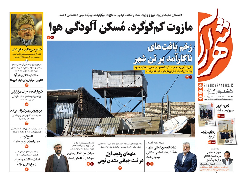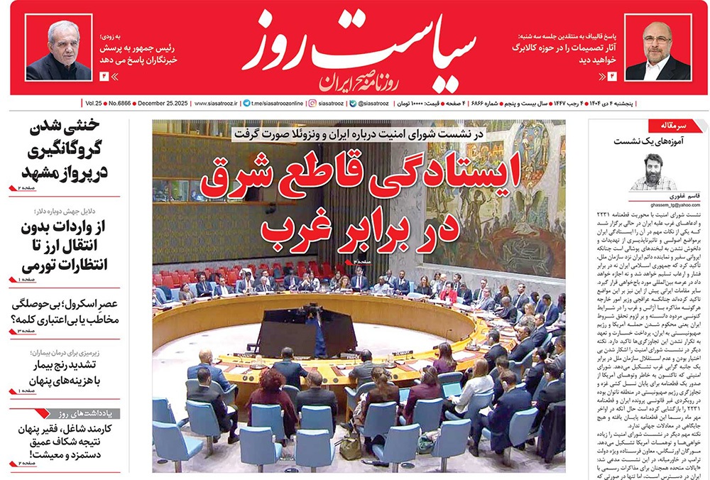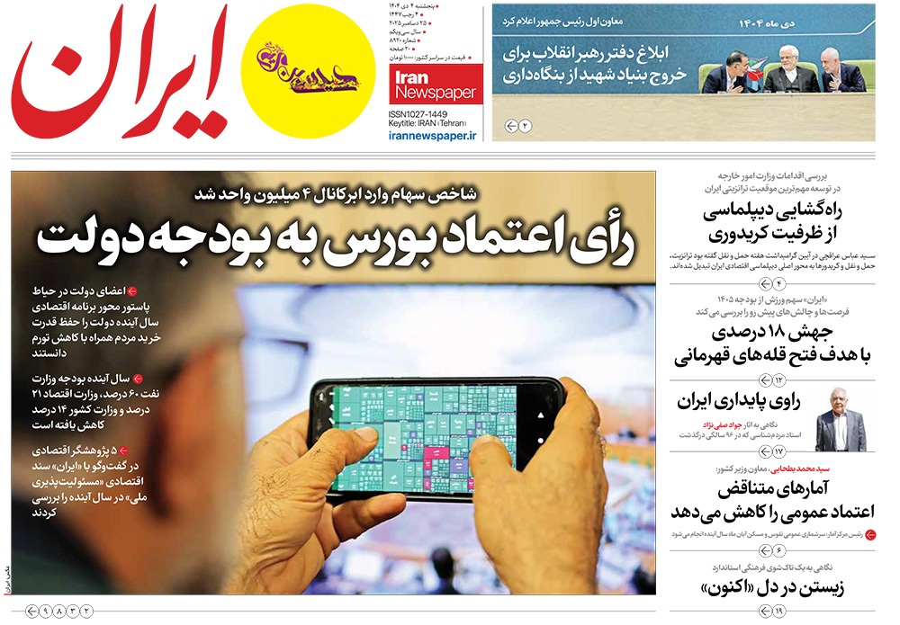 صفحه نخست روزنامه‌های کشور - پنجشنبه ۴ دی ۱۴۰۴