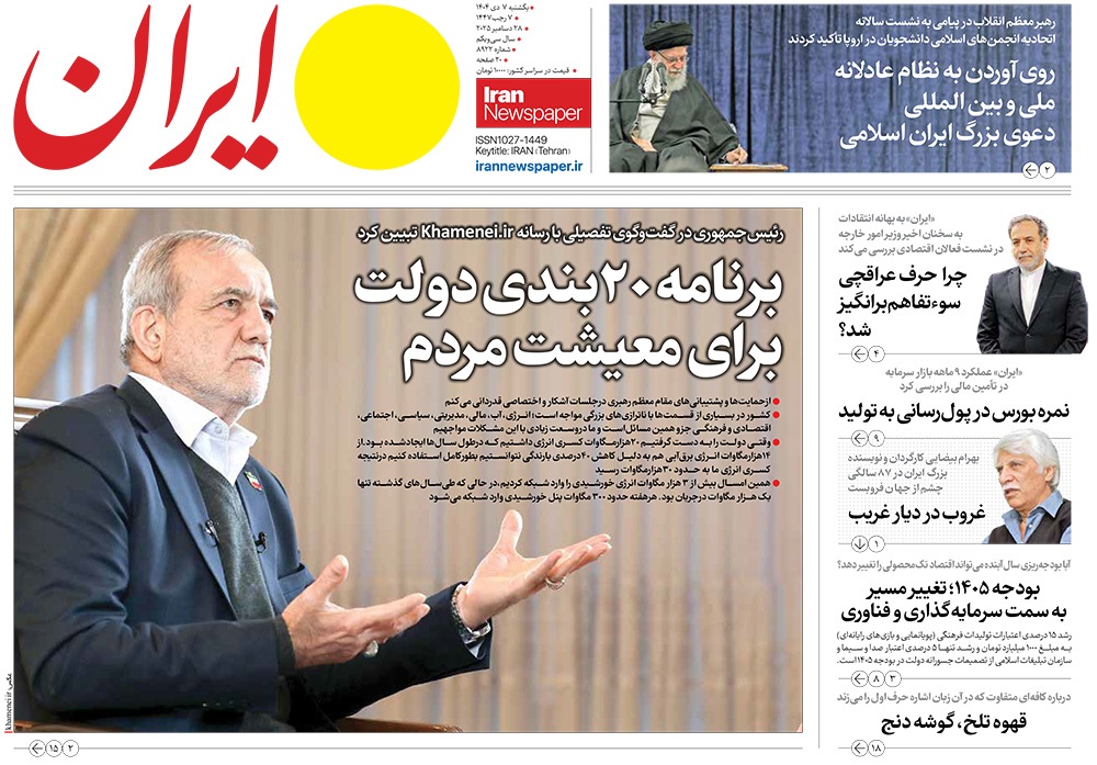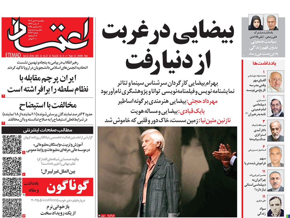 صفحه نخست روزنامه‌های کشور - یکشنبه ۷ دی ۱۴۰۴